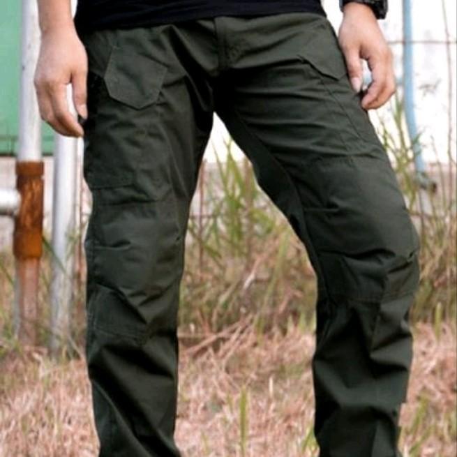 Celana Cargo Tactical Celana Panjang Pria Dewasa Katun Santai Polos Cowok - Hitam Panjang, 28