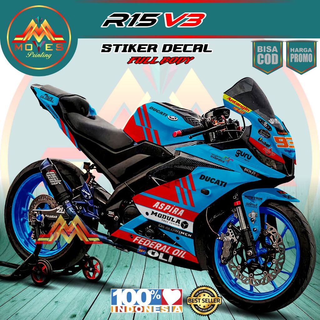 Tahan Lama Decal Stiker Motor R15 V3 Full Body Motif Baru Motif Balap Decal R15 V3 Stiker Variasi Decal Varisi R15 V3