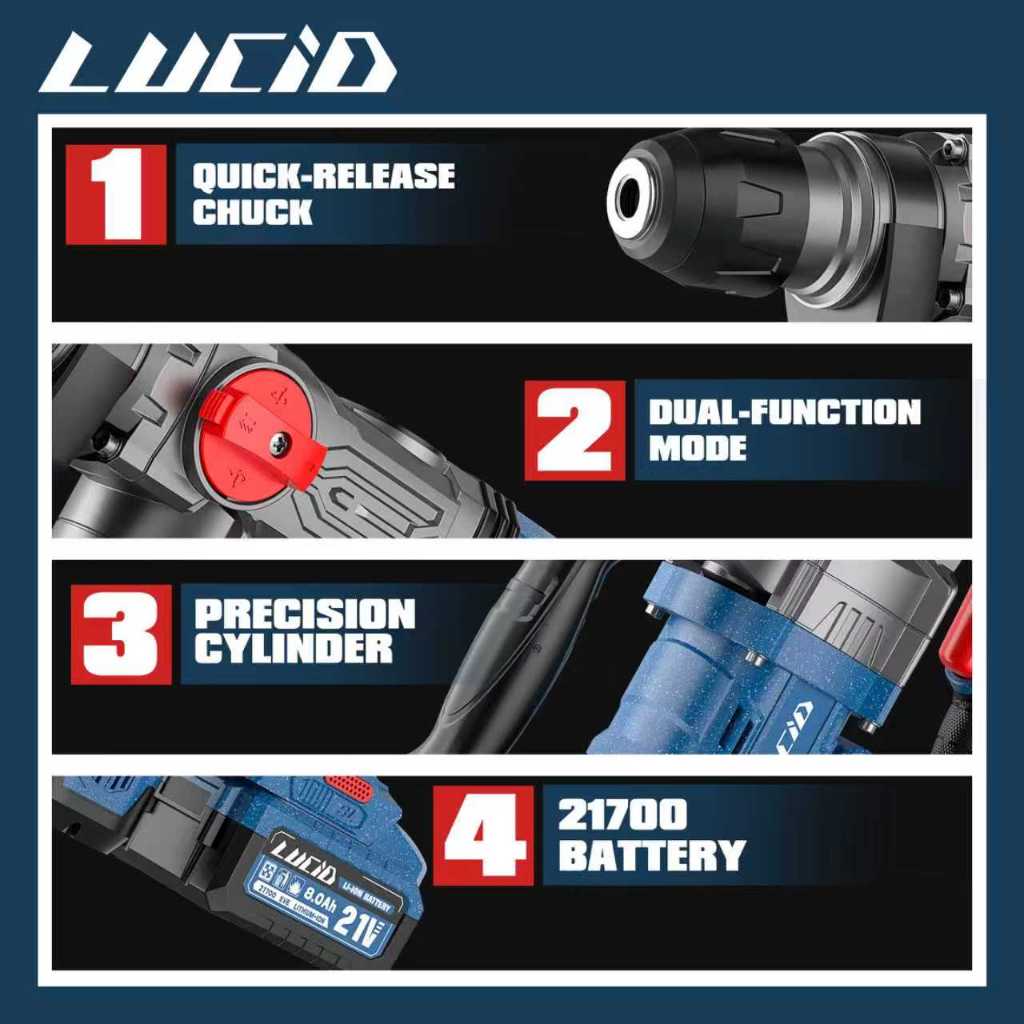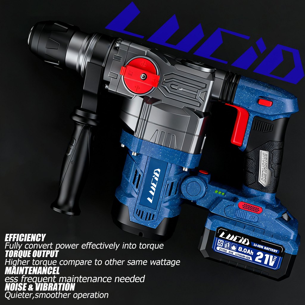 LUCID LR-01 Brushless Rotary Hammer 30MM 8.0A EVE 21700 40P A-Class Lithium Battery Baterai Cordless Hammer
