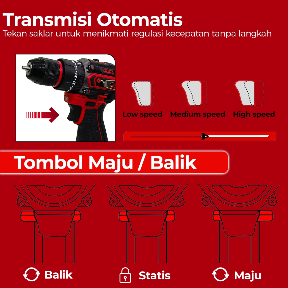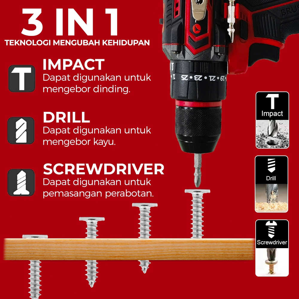 TGAER LH04 Brushless Mesin Bor Impact Drill Cordless Impact Baterai Multifunction Bor Listrik Impact