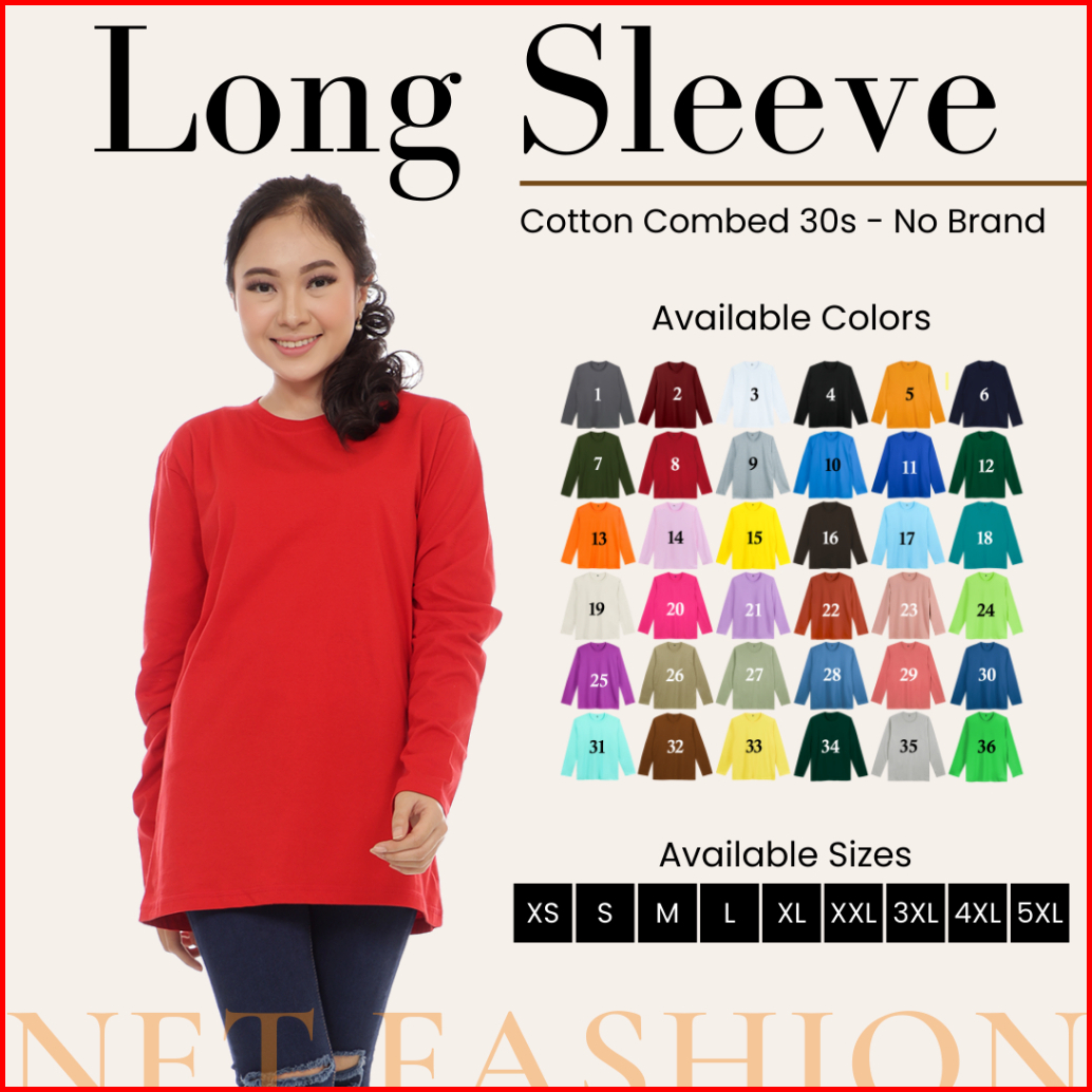 Kaos Polos Wanita Soft Cotton Combed 30s Kaos Lengan Panjang Oneck Reguler Fit Basic Long Sleeve Unisex T-shirt Red Seri