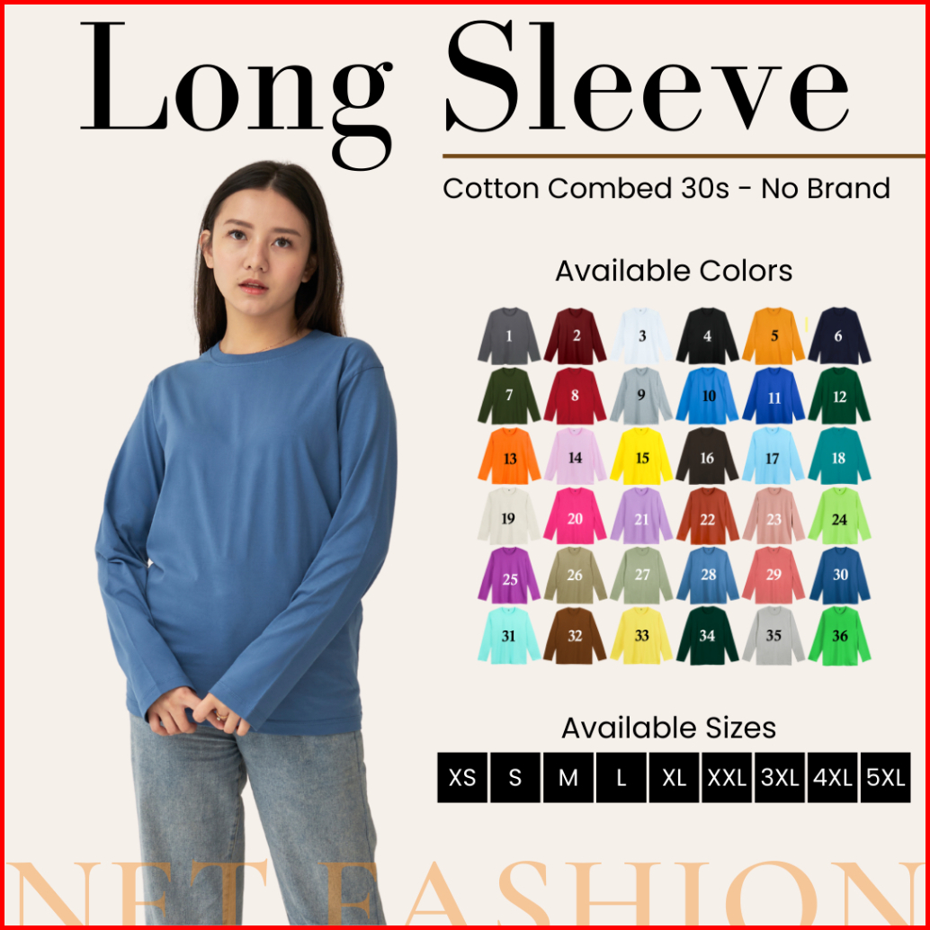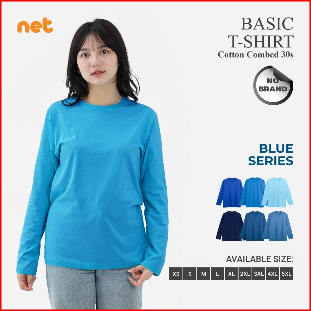 Kaos Polos Wanita Soft Cotton Combed 30s Kaos Lengan Panjang Oneck Reguler Fit Basic Long Sleeve Unisex T-shirt Blue Ser