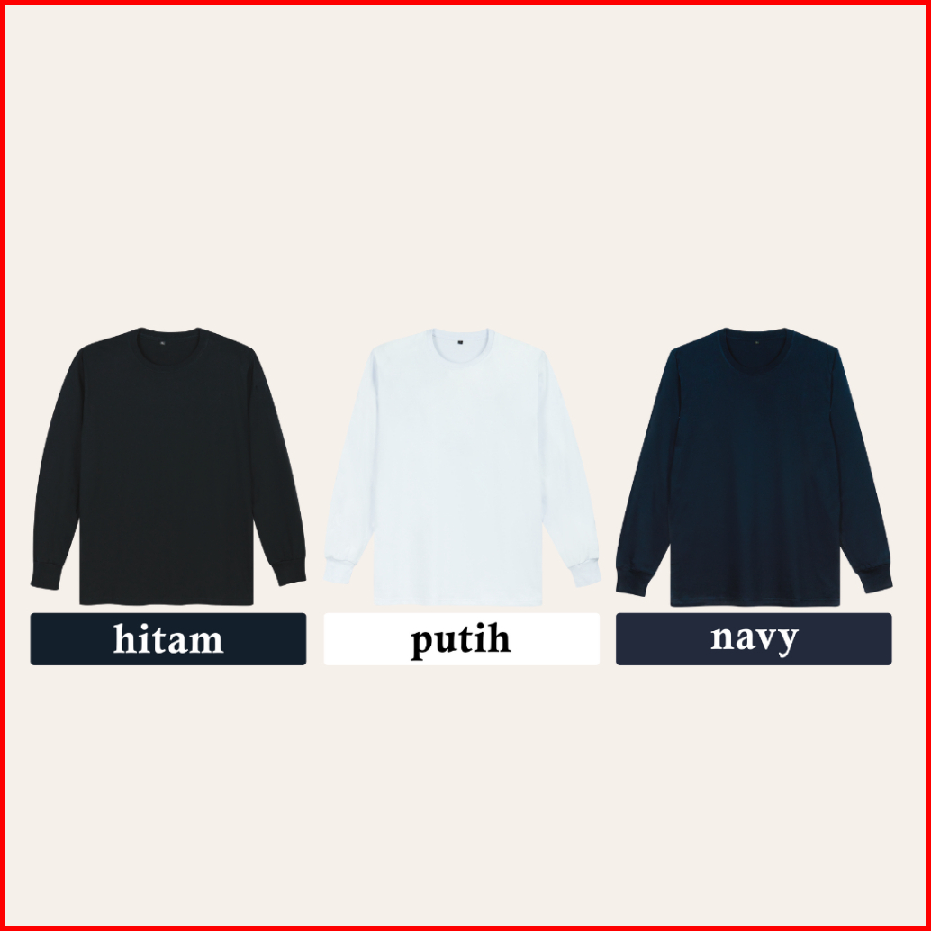 Kaos Polos Lengan Panjang Rib Tangan Karet Unisex Cotton Combed 30s Sweatshirt Reguler Fit