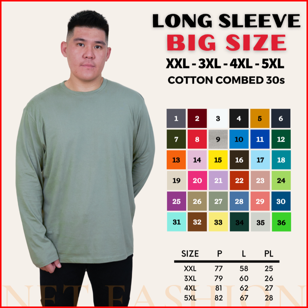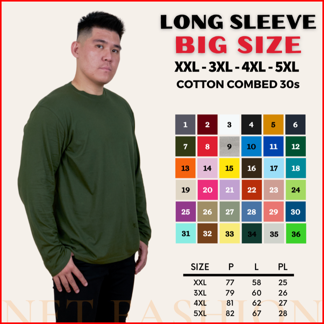 Kaos Polos Big Size Cotton Combed 30s Lengan Panjang Oneck Reguler Fit Basic Long Sleeve Unisex Ukuran Jumbo Besar 2xl 3