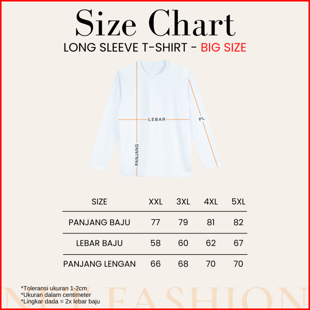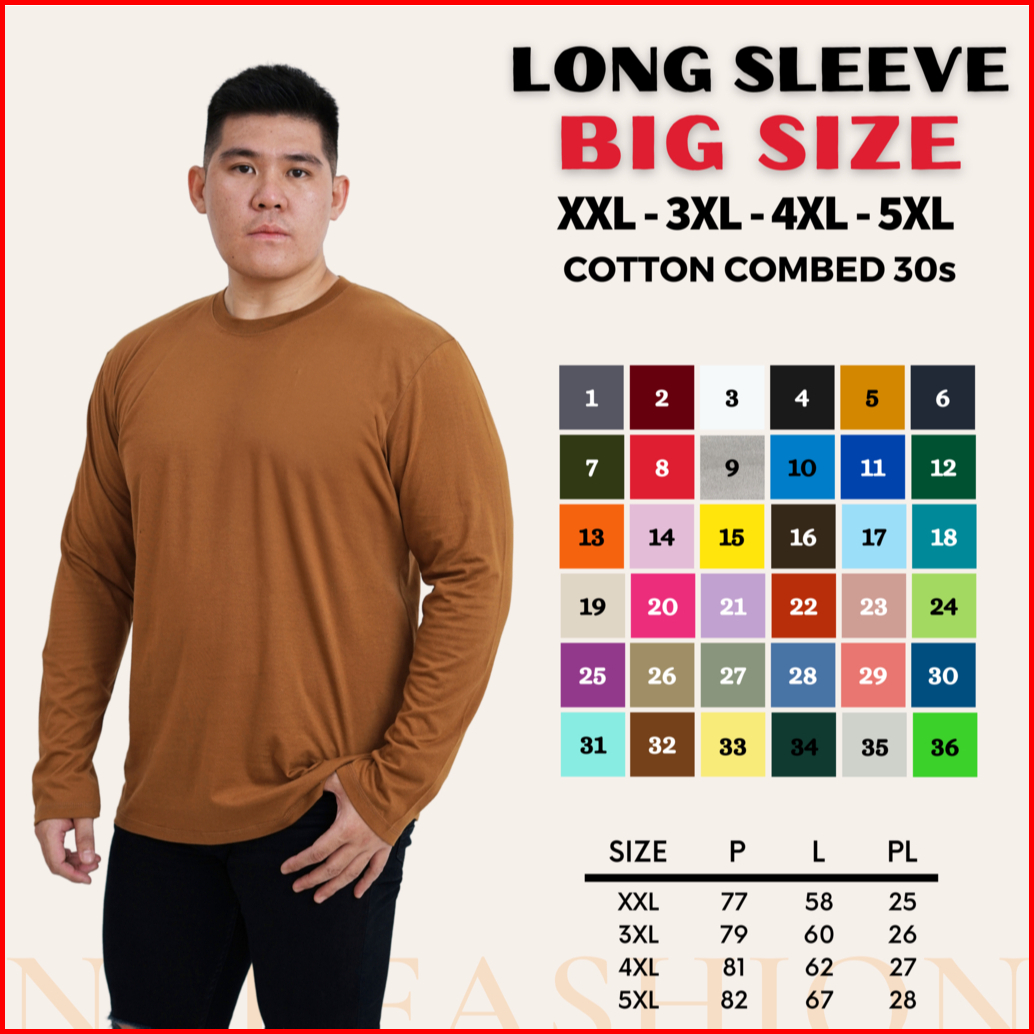 Kaos Polos Big Size Cotton Combed 30s Lengan Panjang Oneck Reguler Fit Basic Long Sleeve Unisex Ukuran Jumbo Besar 2xl 3