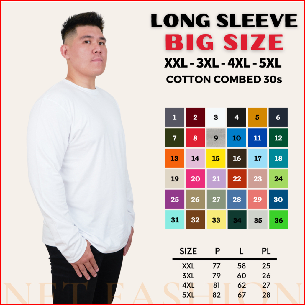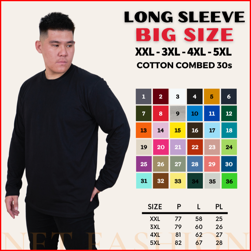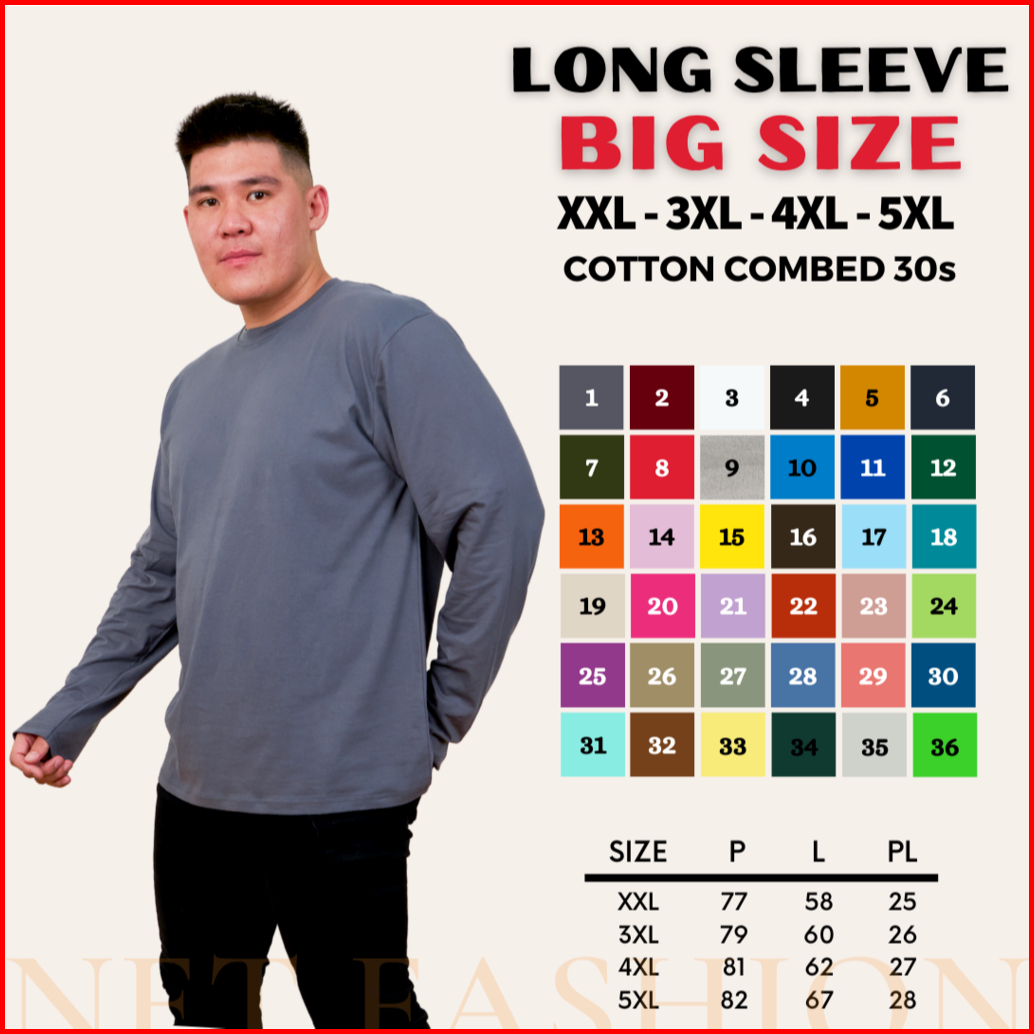Kaos Polos Big Size Cotton Combed 30s Lengan Panjang Oneck Reguler Fit Basic Long Sleeve Unisex Ukuran Jumbo Besar 2xl 3