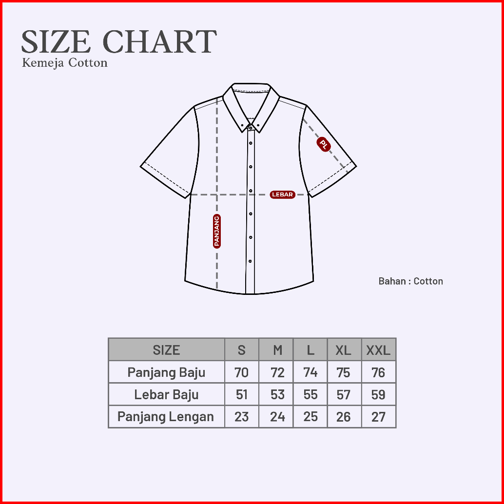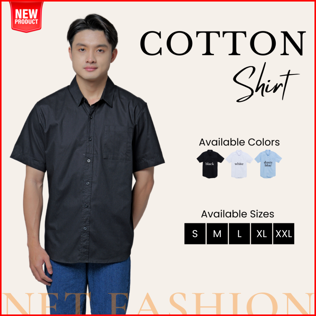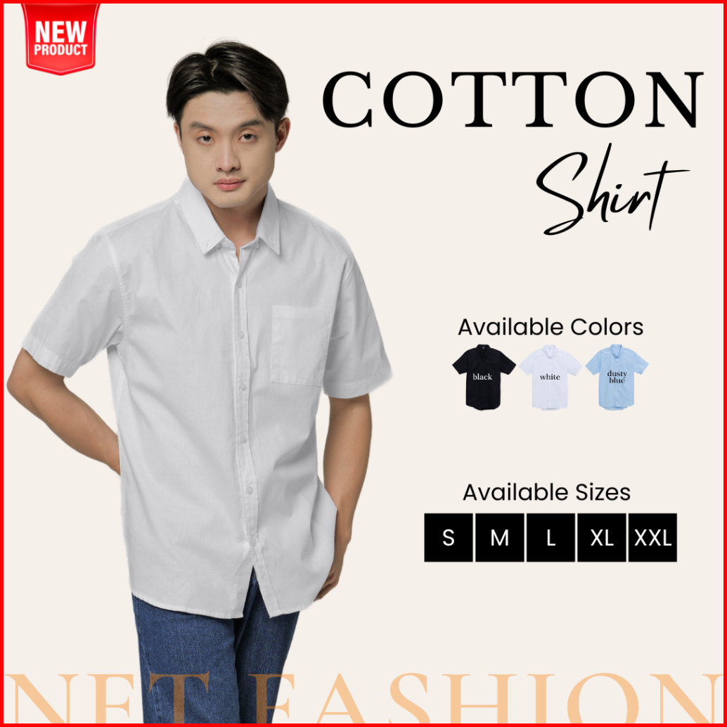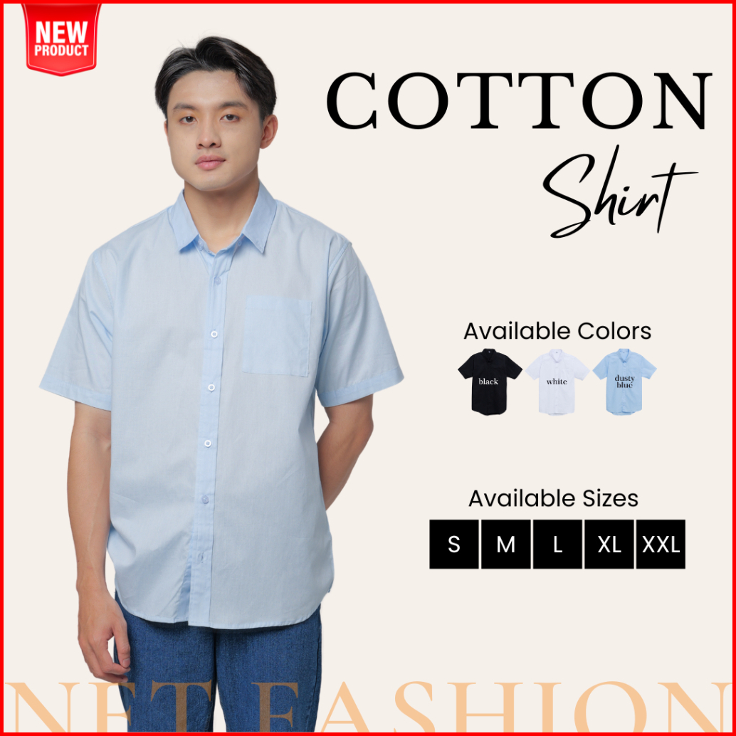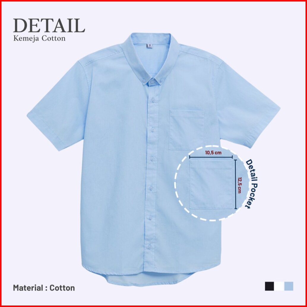 Kemeja Katun Lengan Pendek Premium Polos - Short Sleeve Cotton Shirt