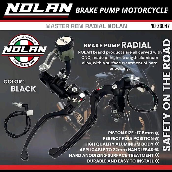 Master Rem Nolan Radial 1 Tabung Sepasang Kanan Dan Kiri Lengkap Switch Rem Universal Motor - Full Hitam, Nolan Radial
