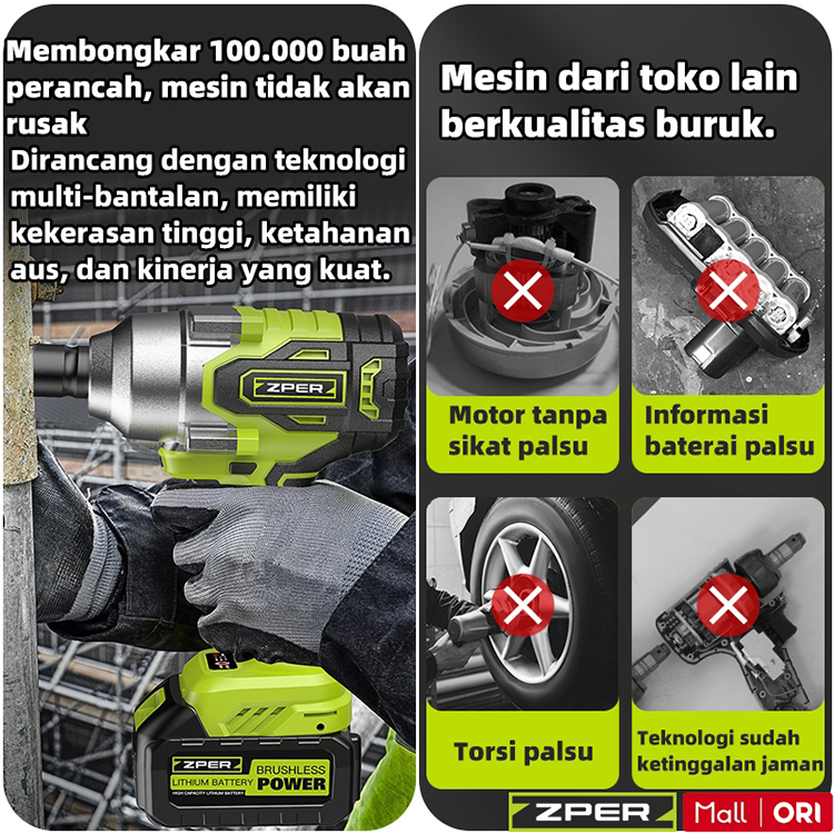 ZPER Impact Wrench Brushless Bor baterai 2in1 Terbaru Selesaikan SEMUA Pekerjaan Baut & Bor dengan TRUE TORQUE Sudah Dil