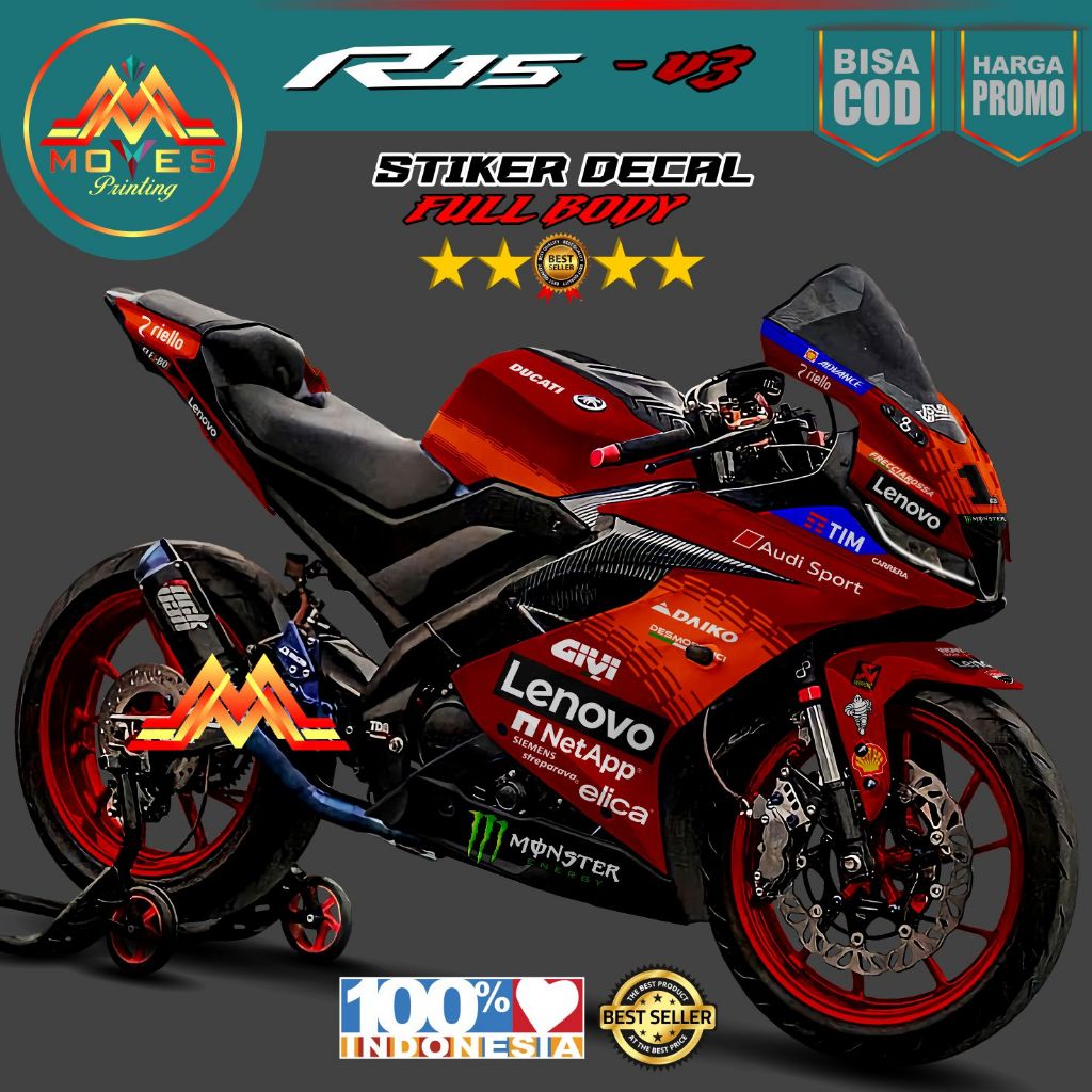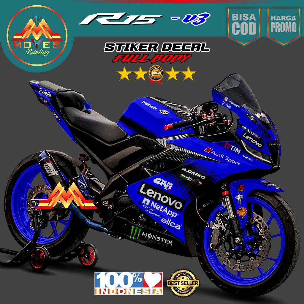 Motip Balap Decal Stiker Motor R15 V3 Full Body Motif Balap Lenovo Stiker R15 V3 Stiker Variasi