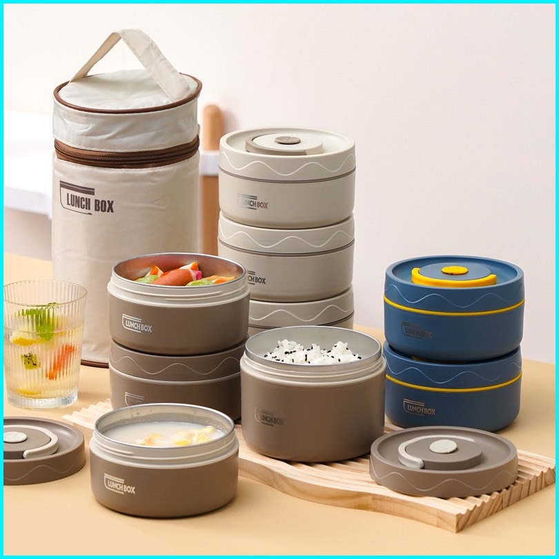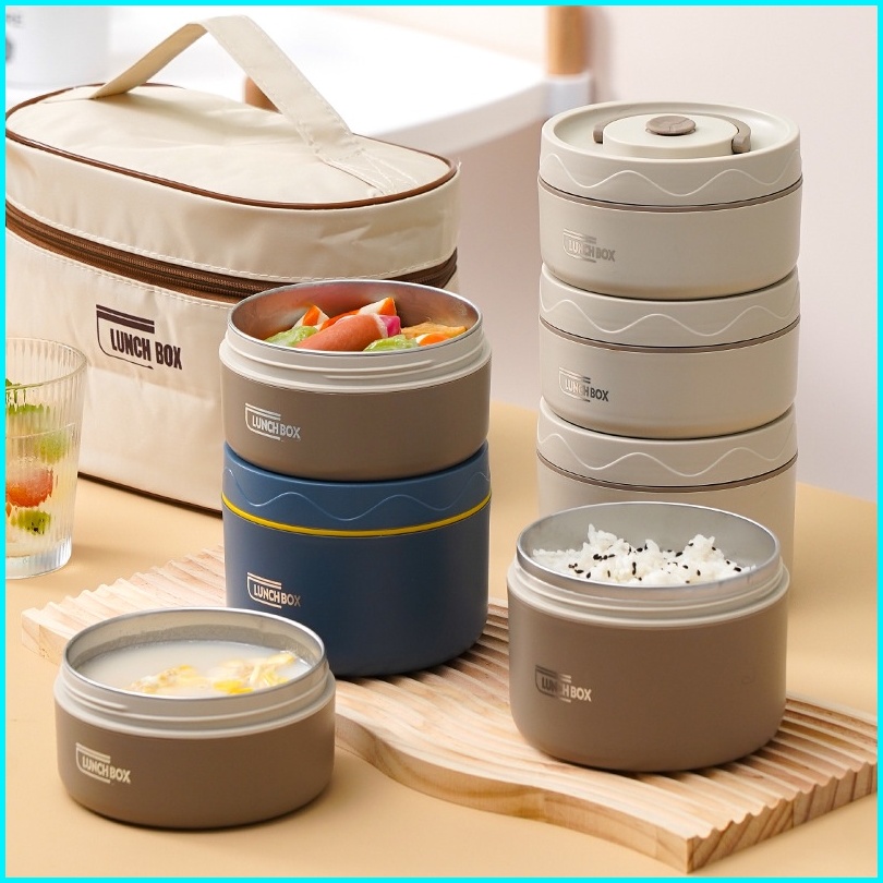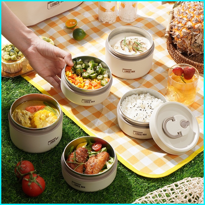 Kotak Makan Siang Bento Portabel Tahan Bocor Stainless Lunch Box Cream Rice Container Mangkok Cangkir Sup Portable Stain