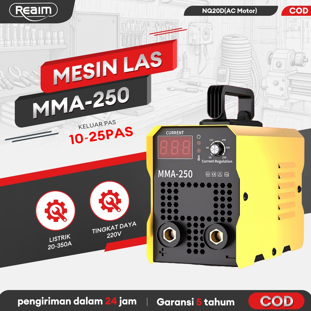 Reaim Mesin Las Inverter IGBT Realm 450W MMA-250 105A: Trafo Las Berkecepatan Tinggi,solder listrik set lengkap, Cocok untuk Pengelasan