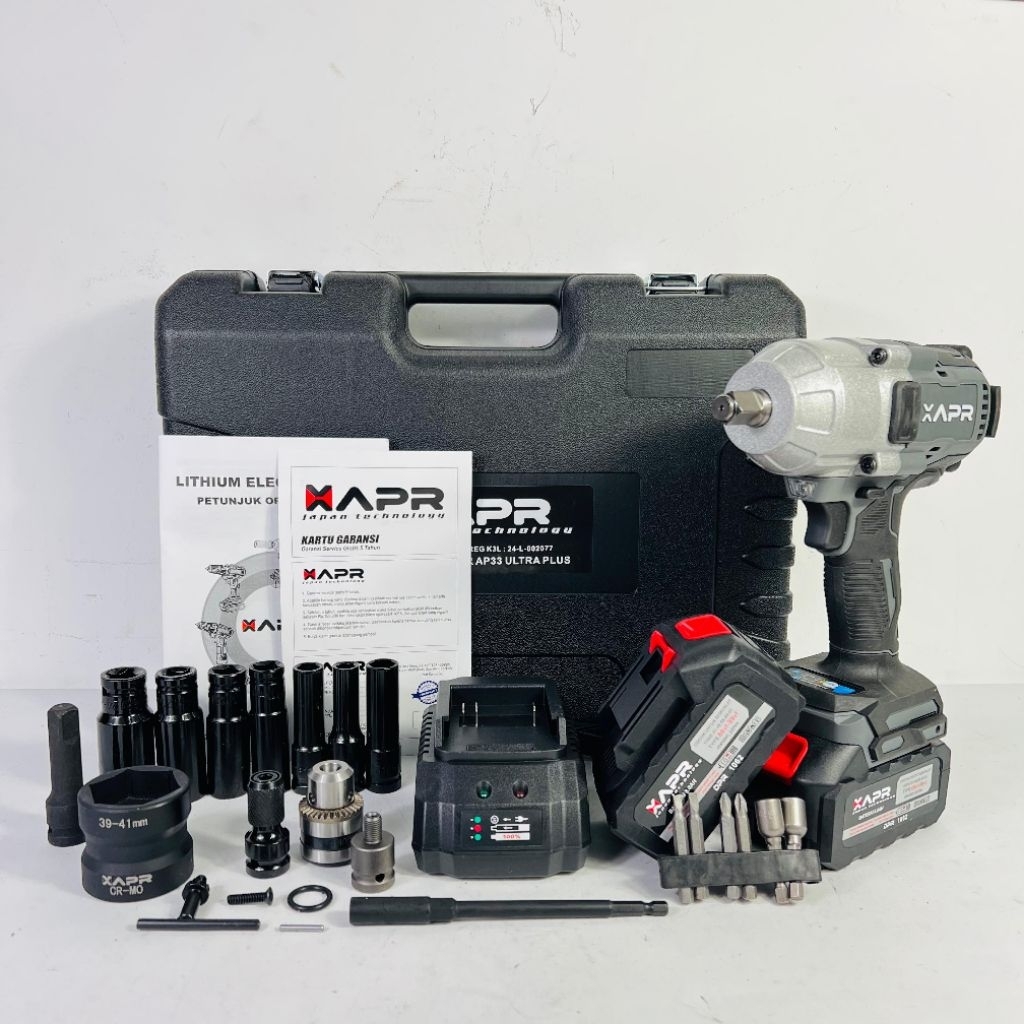 LIMITED EDITION XAPR IMPACT WRENCH JUMBO ULTRA CVT EDITION AP33ULTRAPLUS 1850NM 2 BATRAI FULLSET ASESORIS CVT BOR PEMBUKA BAUT