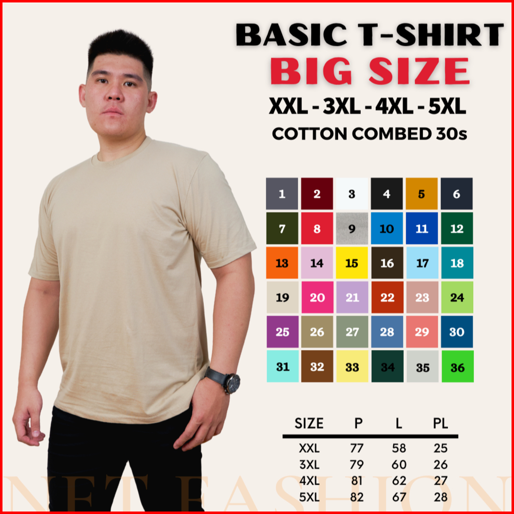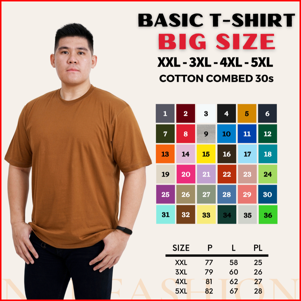 Kaos Polos Big Size Cotton Combed 30s Lengan Pendek Oneck Reguler Fit Basic Short Sleeve Unisex Ukuran Jumbo Besar 2xl 3