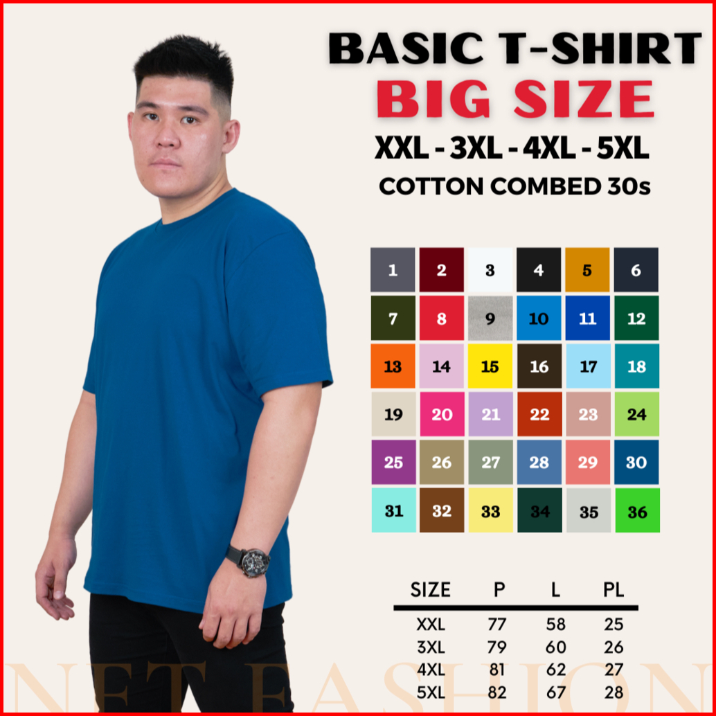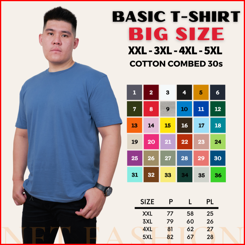 Kaos Polos Big Size Cotton Combed 30s Lengan Pendek Oneck Reguler Fit Basic Short Sleeve Unisex Ukuran Jumbo Besar 2xl 3