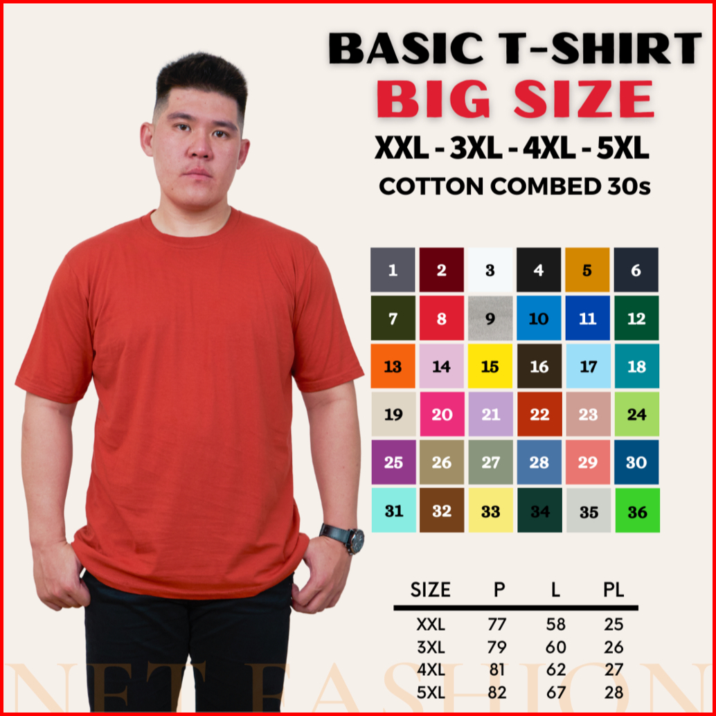 Kaos Polos Big Size Cotton Combed 30s Lengan Pendek Oneck Reguler Fit Basic Short Sleeve Unisex Ukuran Jumbo Besar 2xl 3