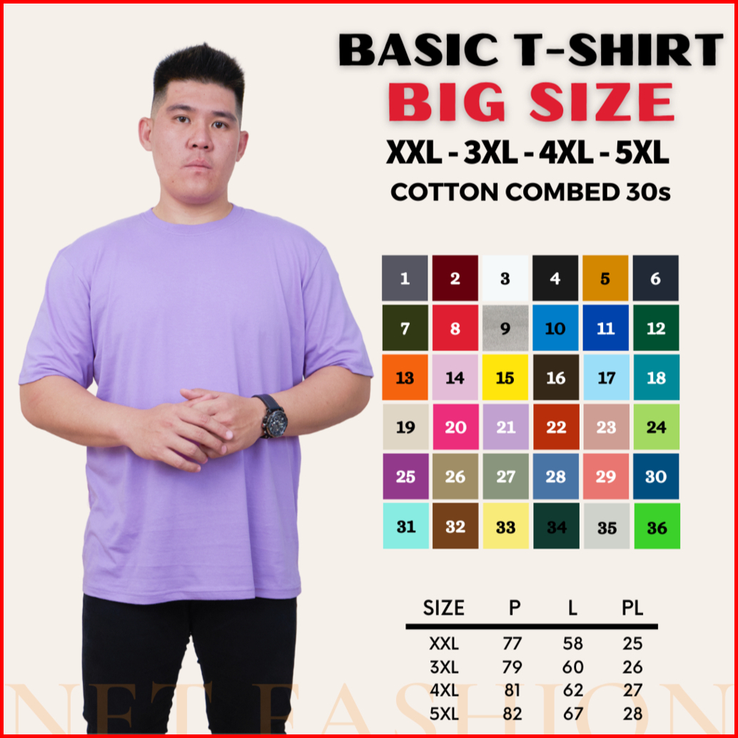 Kaos Polos Big Size Cotton Combed 30s Lengan Pendek Oneck Reguler Fit Basic Short Sleeve Unisex Ukuran Jumbo Besar 2xl 3