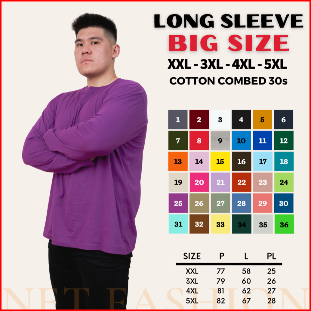 Kaos Polos Big Size Cotton Combed 30s Lengan Panjang Oneck Reguler Fit Basic Long Sleeve Unisex Ukuran Jumbo Besar 2xl 3
