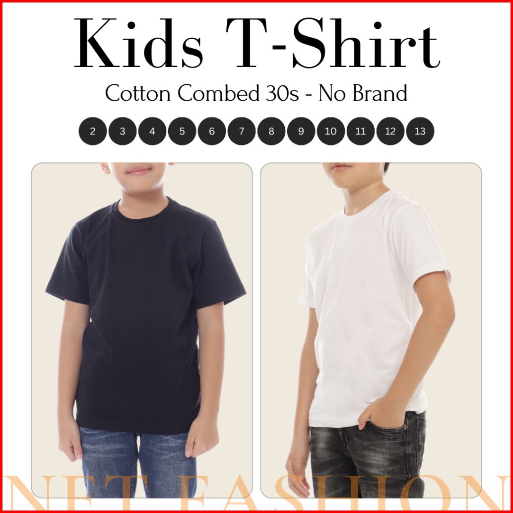 Kaos Polos Anak Lengan Pendek Cotton Combed 30s Baju Kaos Kids Umur 2-13 Tahun - Black Hitam White Putih