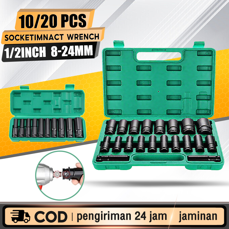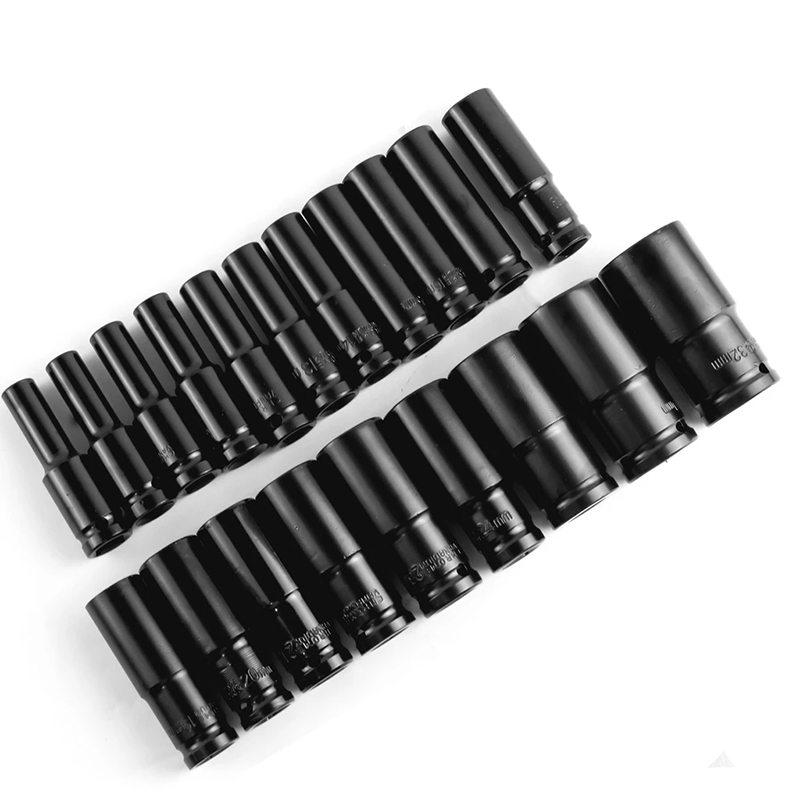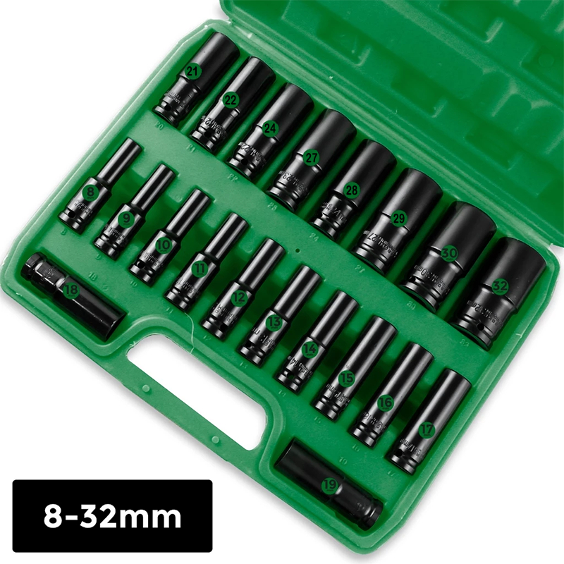 Reaim 20PCS Impact Wrench Socket 1/2 Inch 8-32MM Mata Sok Panjang Deep Socket 20PCS Panjang Mencapai Soket Nut Perbaikan Alat Impact Socket Set