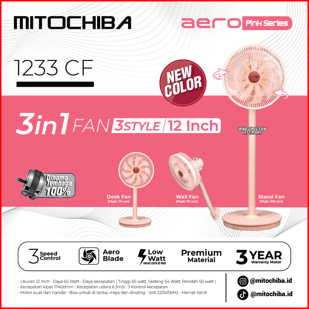 Mitochiba Kipas Angin Multifungsi 3in1 1233cf 12 Inch Aero Series