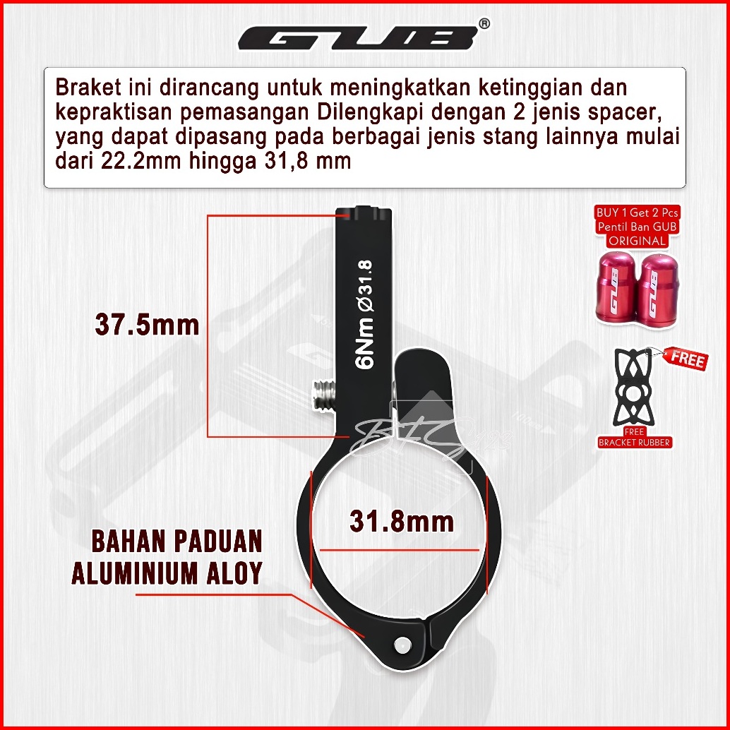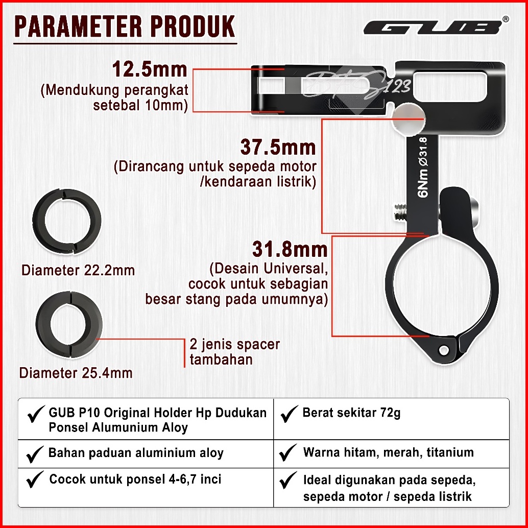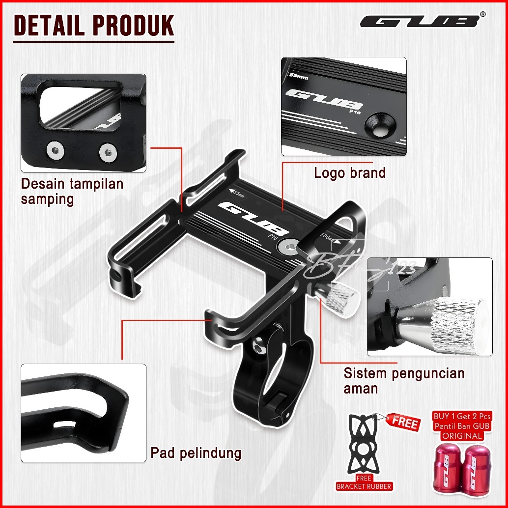 Gub P10 Original Holder Hp Dudukan Ponsel Alumunium Aloy Free Tutup Pentil Ban Gub 2 Pcs