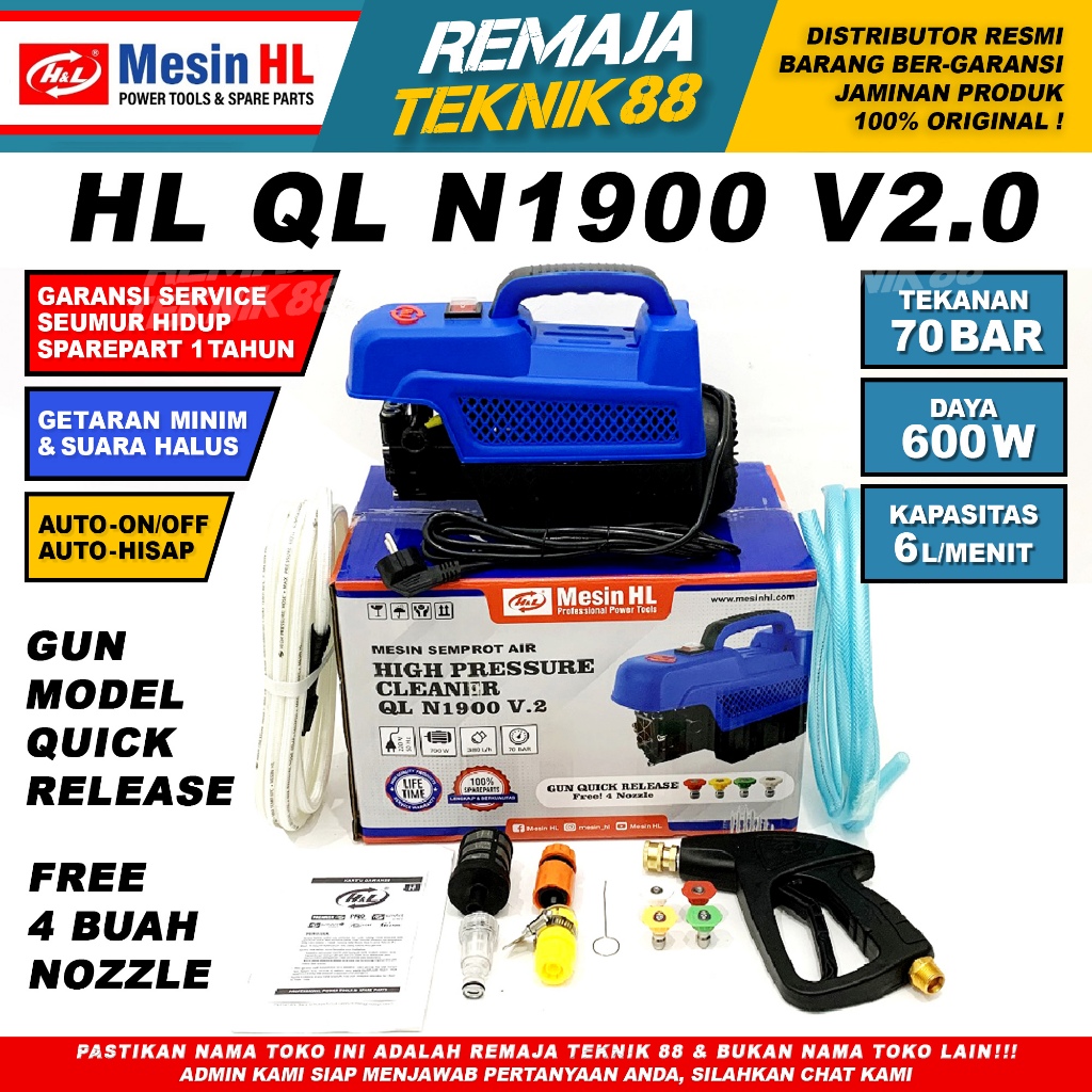 ALAT STEAM CUCI MOBIL MOTOR / H&L QL 1900 / HL QL N 1900 / HL QL N1900 / JET CLEANER / HIGH PRESSURE CLEANER