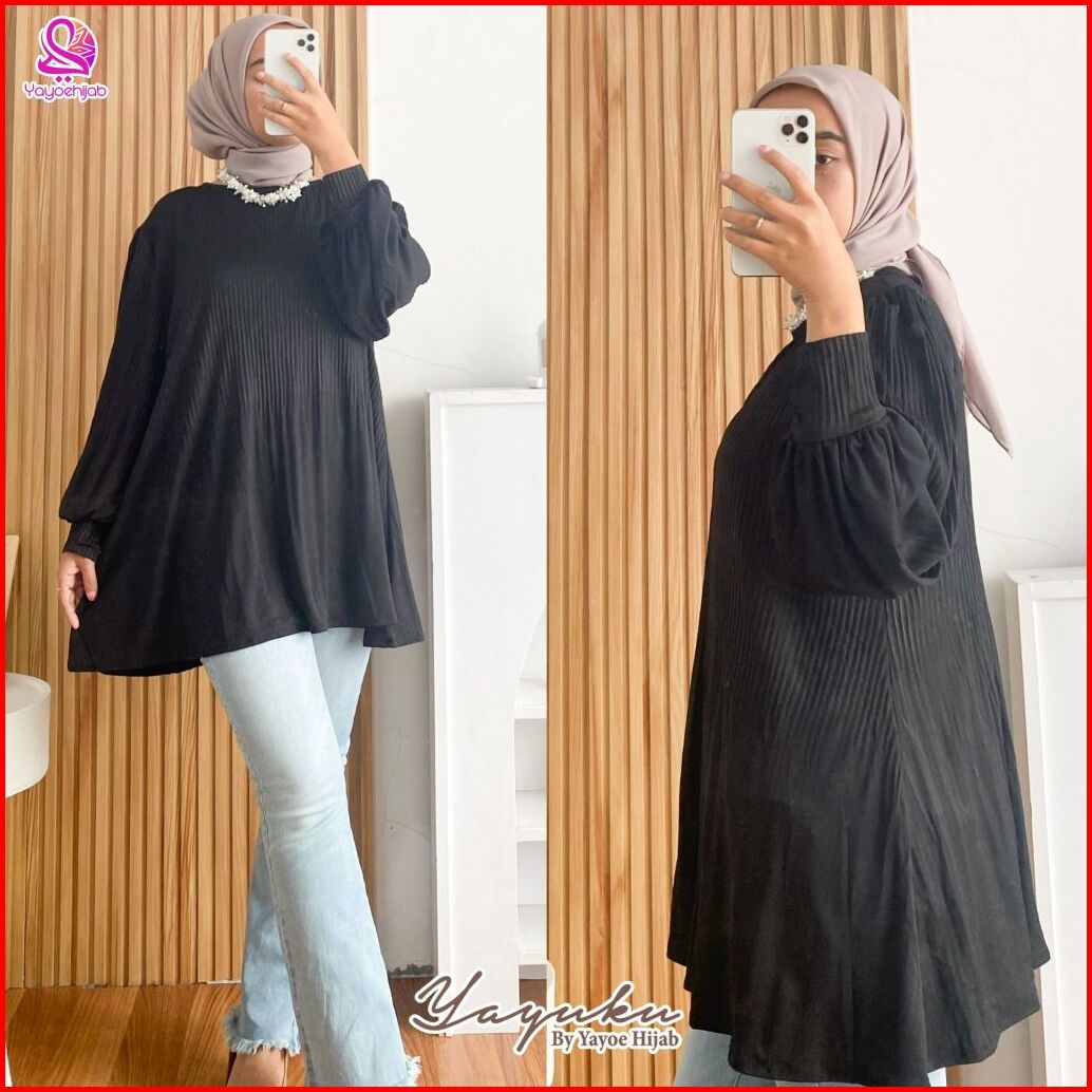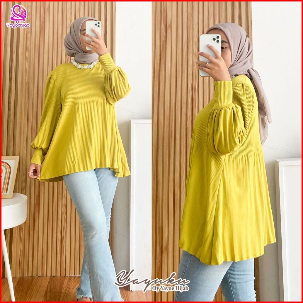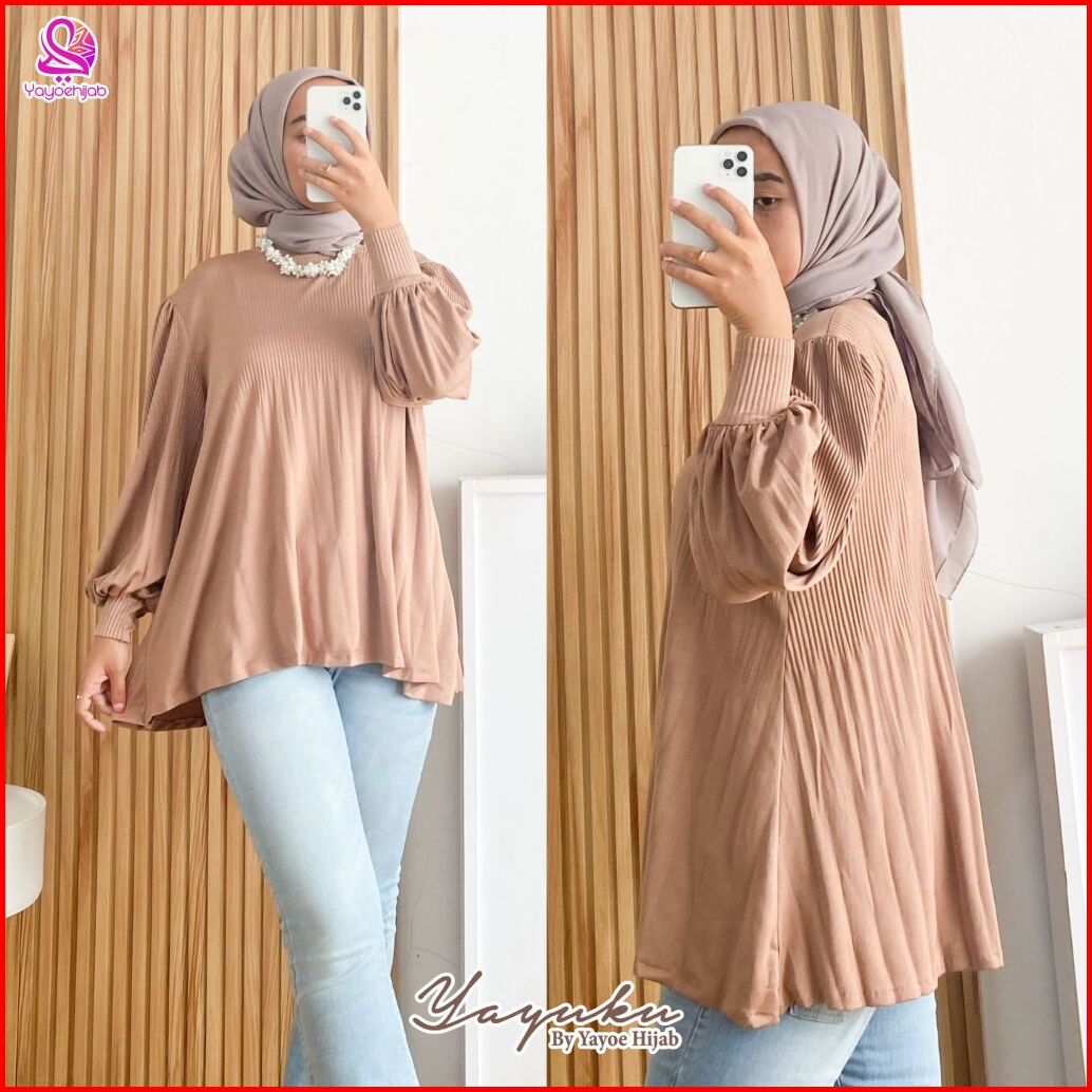Nesha Blouse Atasan Remaja Wanita Polos Casual Plisket Pleats Yayuku By Yayoe Hijab