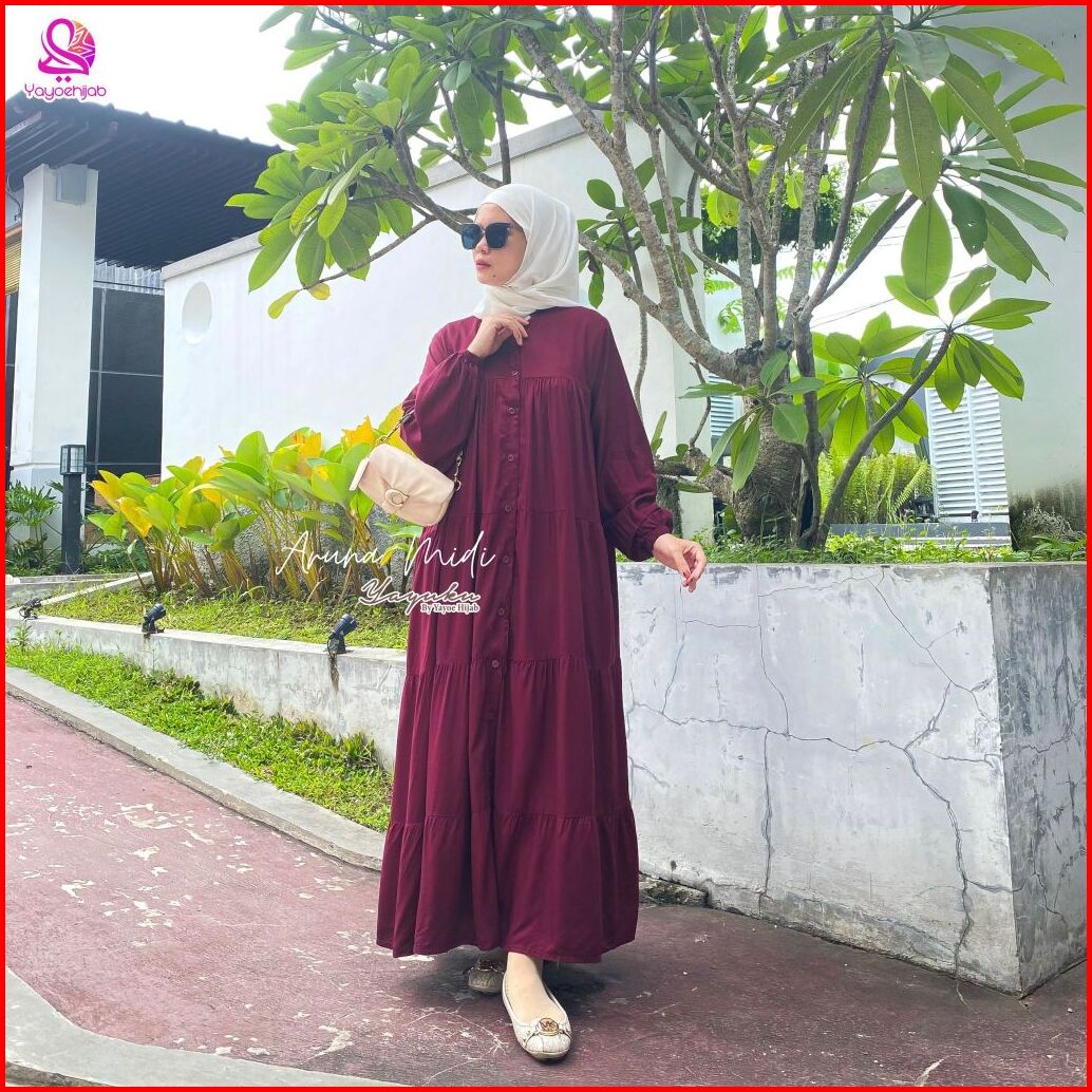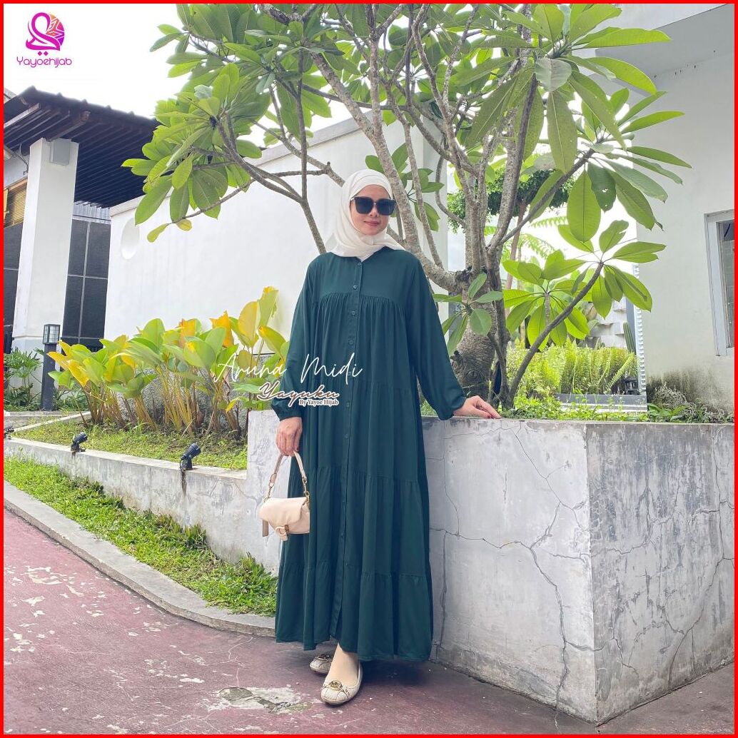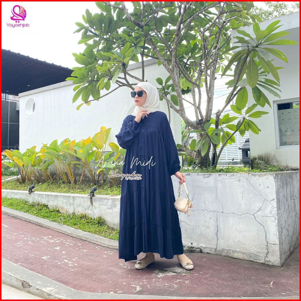Aruna Midi Dress Bahan Rayon Twill Fashion Muslim Polos Yayuku By Yayoe Hijab