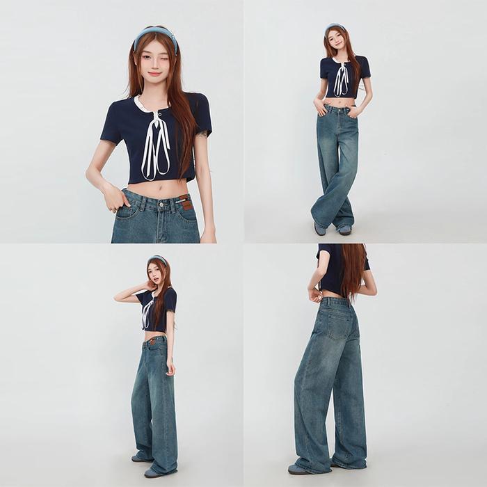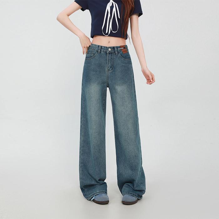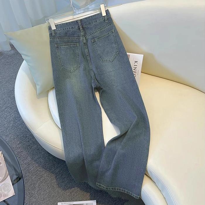 Celana Jeans Wanita High Waist Loose Murah Model Korea - Cewek Oufit Jeans Wide Jeans Jeans High Biru Retro Streetwea
