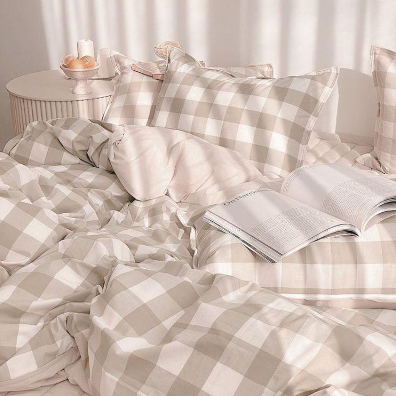 SPREI AESTHETIC MOTIF KOTAK KHAKI | SEPRAI KOTAK ALA KOREA FREE SARBAN SARGUL