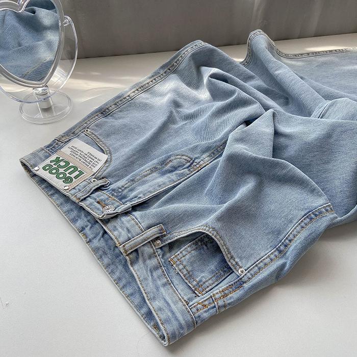 Lulu-Jeans New Biru Muda Kulot Longgar High Waist Celana Jeans Panjang WanitaGood LuckRealpict - Premium Biru Muda 6