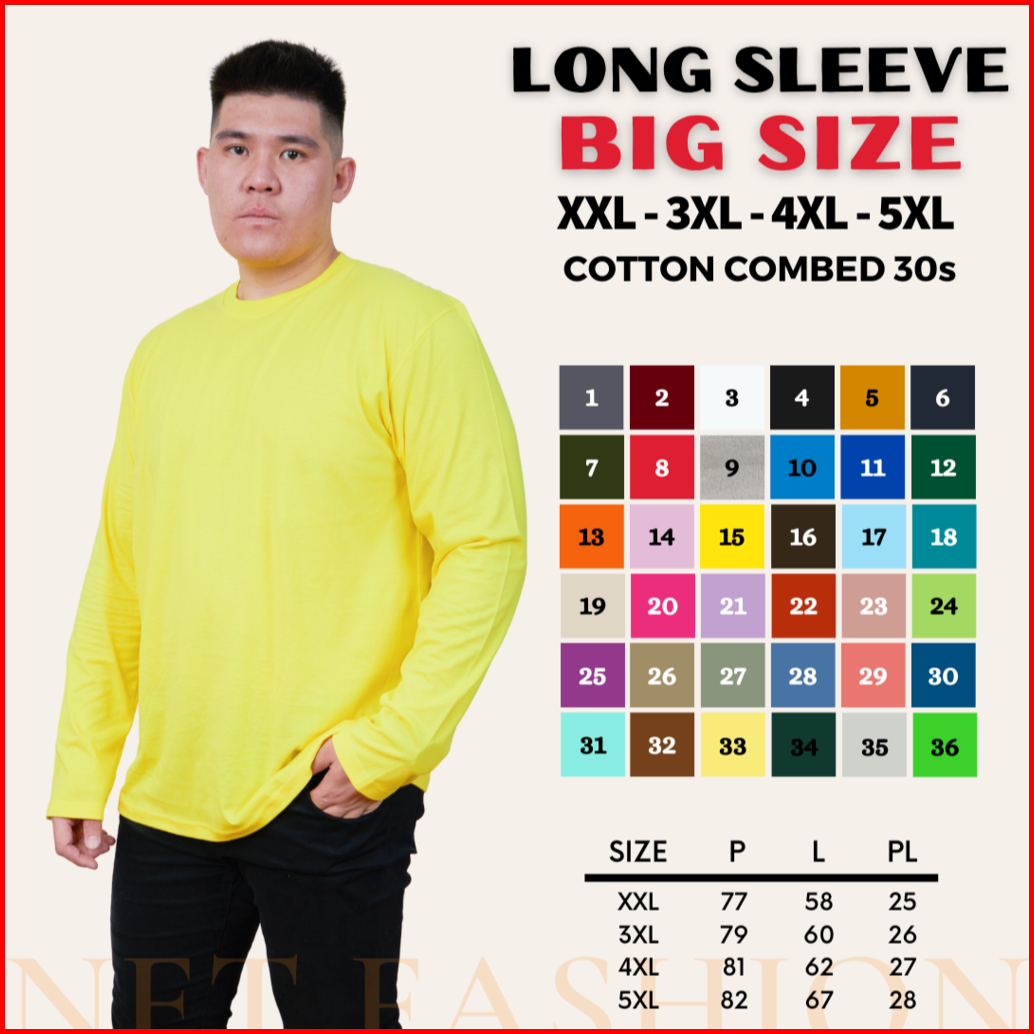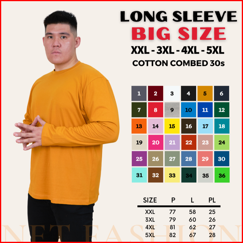 Kaos Polos Big Size Cotton Combed 30s Lengan Panjang Oneck Reguler Fit Basic Long Sleeve Unisex Ukuran Jumbo Besar 2xl 3