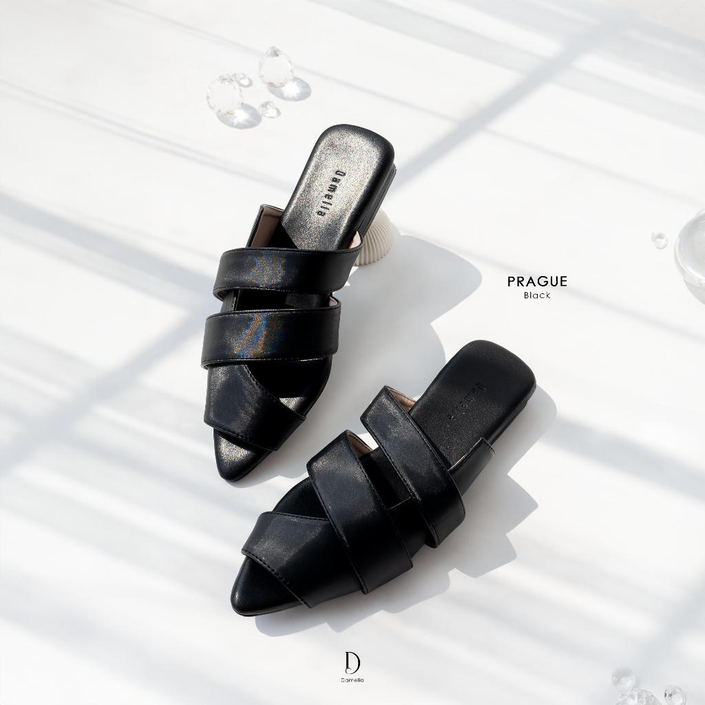 Damelia Melstore JKT Prague Mules Sandal Open Toe Flat Slip-On Satin Silk