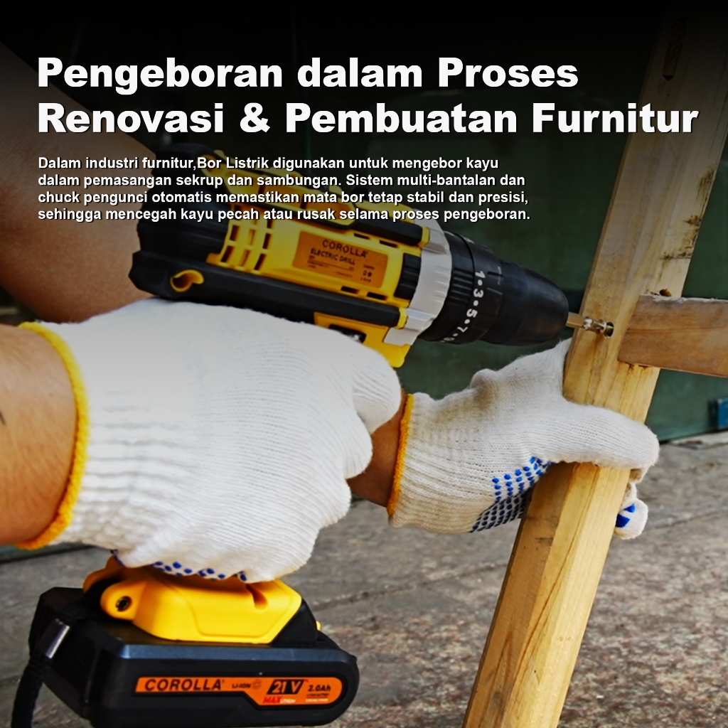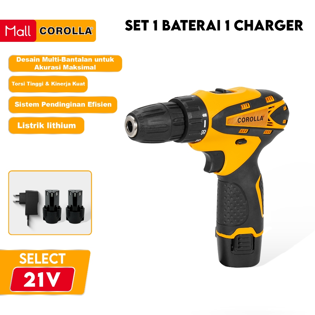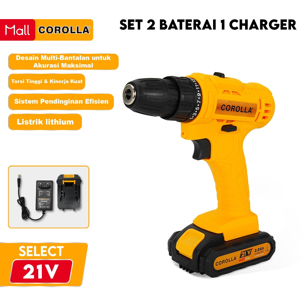 Corolla Mesin Listrik Bor Listrik Impact Drill Listrik Mesin Baterai Bor Tangan 21V/Bor Listrik Lithium-ion Electric Drill Set 21V