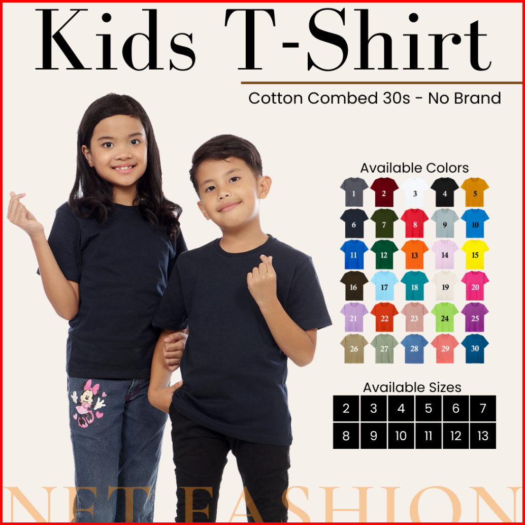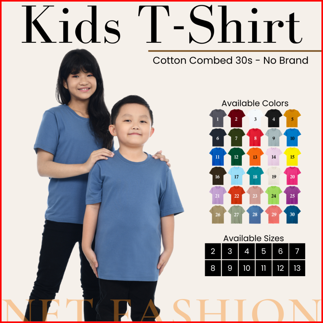 Kaos Polos Anak Cotton Combed 30s Kids Lengan Pendek Oneck Reguler Fit Basic T-shirt Unisex Umur 2-13 Tahun Blue Series