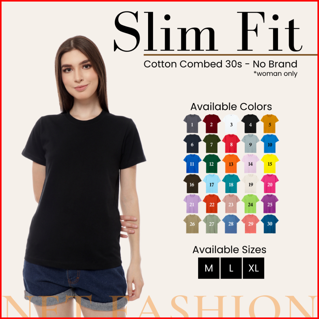 Kaos Polos Slimfit Wanita Cotton Combed 30s Lengan Pendek Cewek Slim Fit T-shirt Monochrome Series