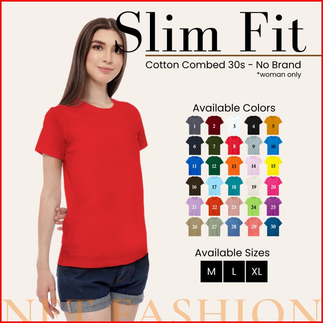 Kaos Polos Slimfit Wanita Cotton Combed 30s Lengan Pendek Cewek Slim Fit T-shirt Red Series