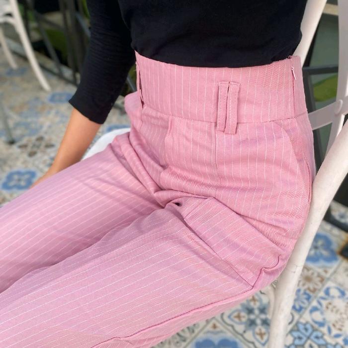 Diora Pants Stripe - Celana Diora Pants Resleting Samping - Diora Pants Highwaist Loose Pants - Pink Stripe, Xs