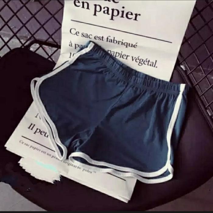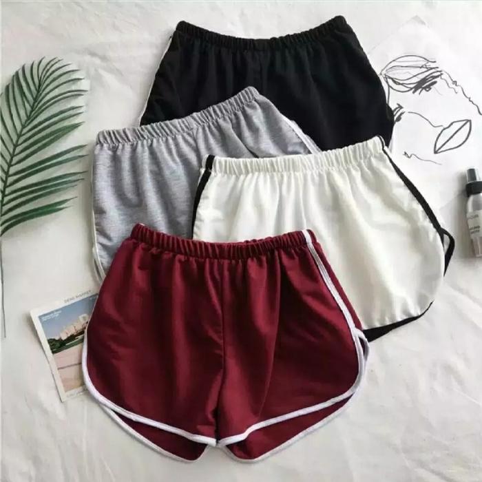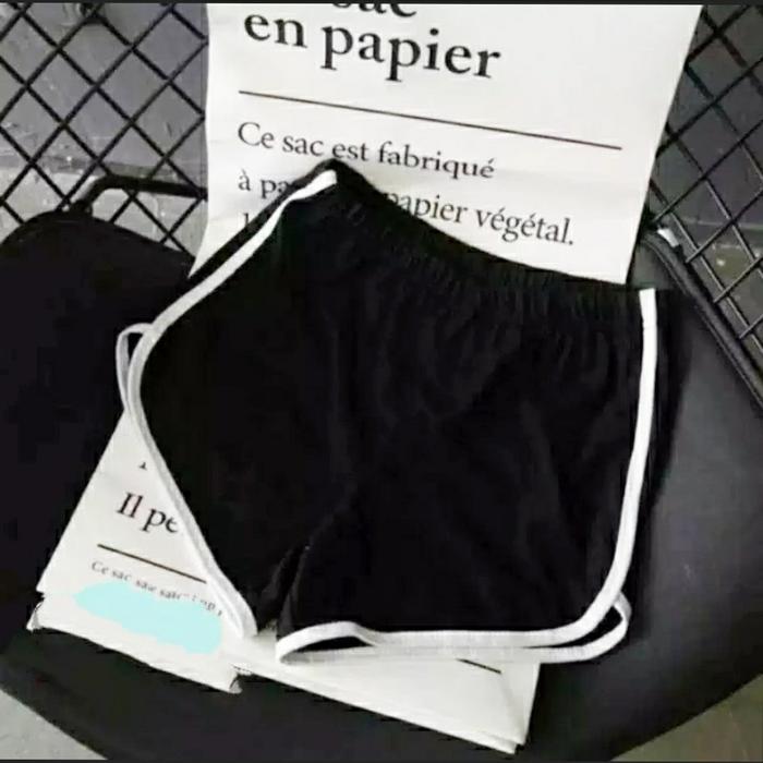 Celana Pendek Lest Pant Santai Olahraga Bahan Babytery Tebal Wanita Gym Karet Melar Standar Polos Boxer - Hitam, Al