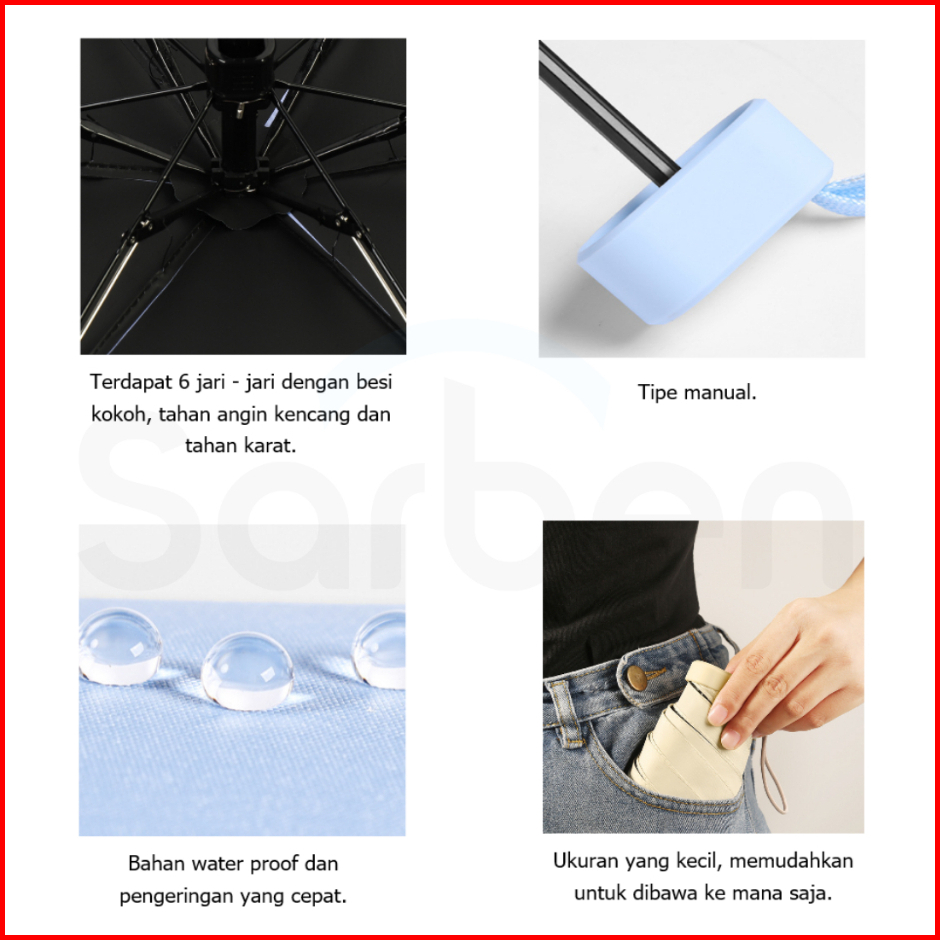 Payung Lipat Mini 15 Cm - Multi Fungsi Tahan Hujan Uv Upf 50