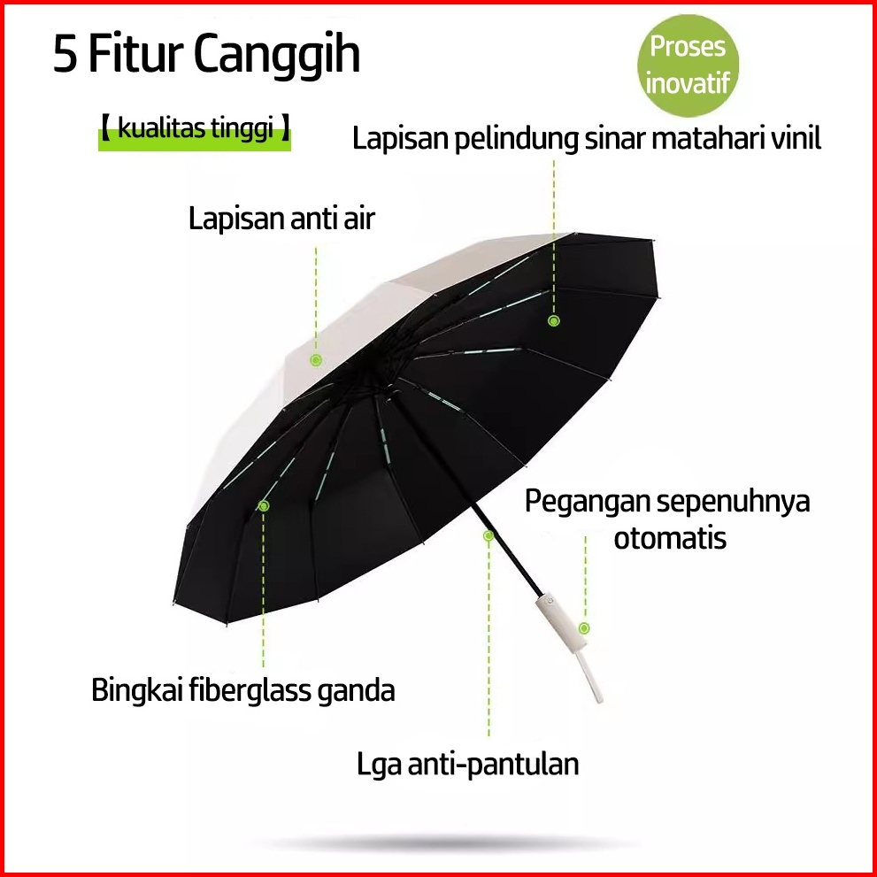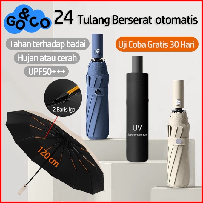 Go Co Payung Lipat Premium 24 Ruas Otomatis Buka Tutup Anti Uv Payung Kokoh Payung Hujan Kualitas
