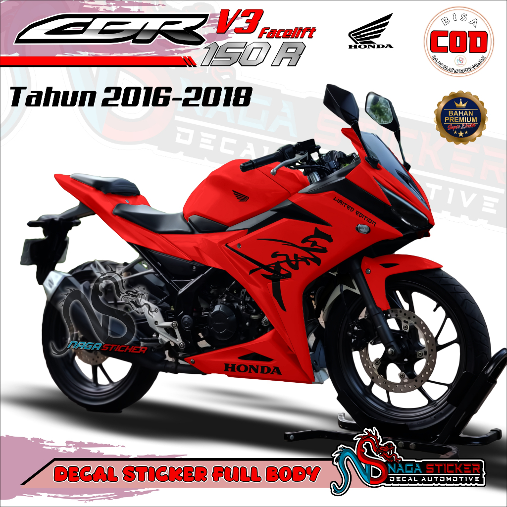 Decal Sticker Motor Full Body Honda Cbr 150R Thn 2016 - 2020 Motif Kanji Crv301 Desain Bisa Custom
