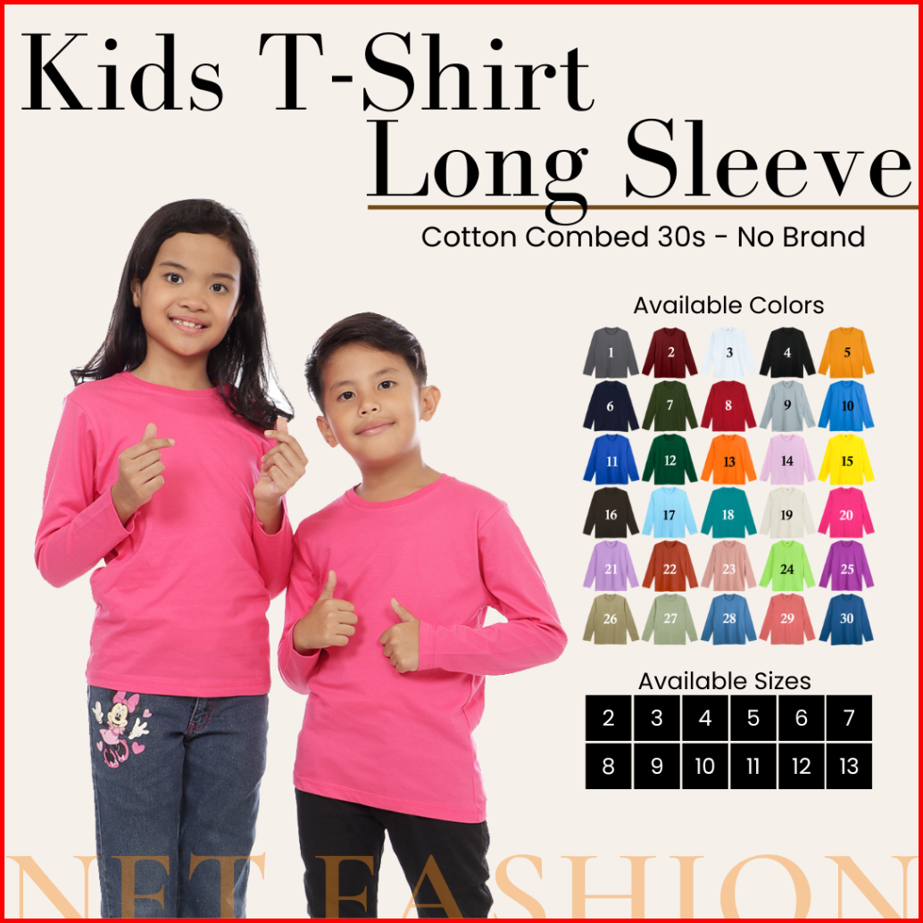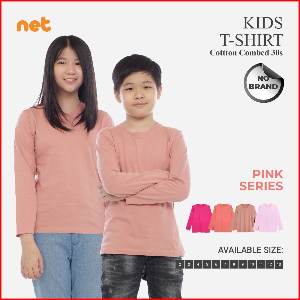 Kaos Polos Anak Cotton Combed 30s Kids Lengan Panjang Oneck Reguler Fit Basic T-shirt Unisex Umur 2-13 Tahun Pink Series