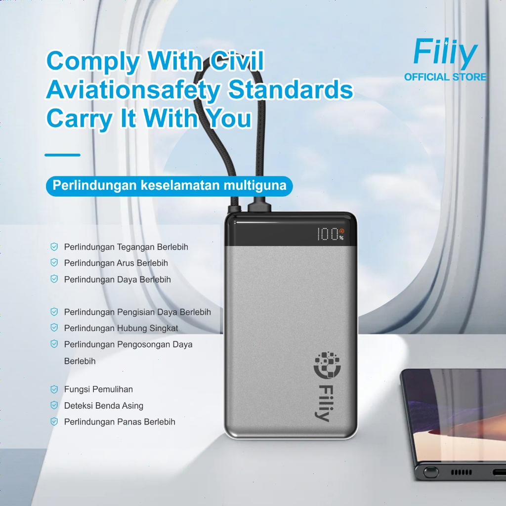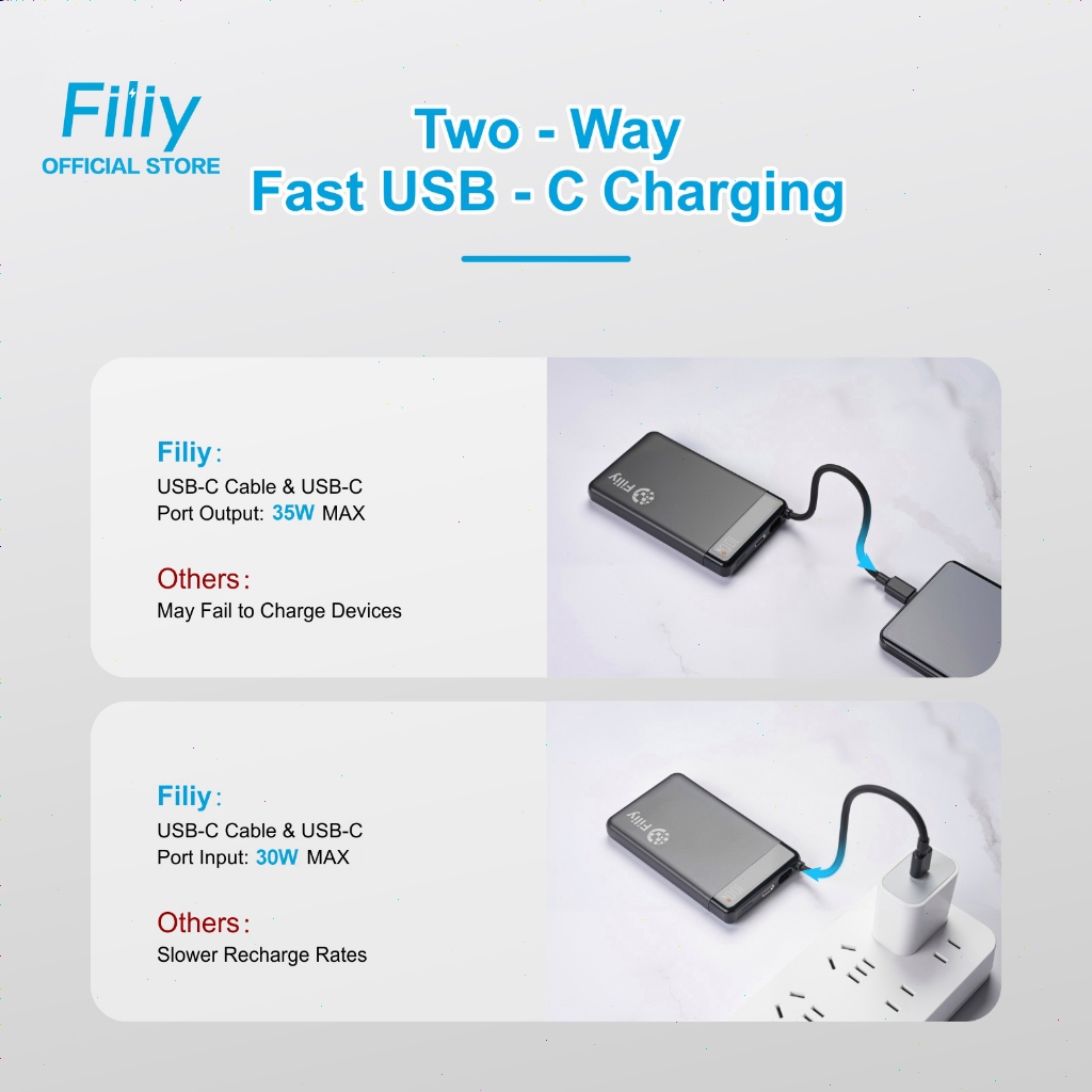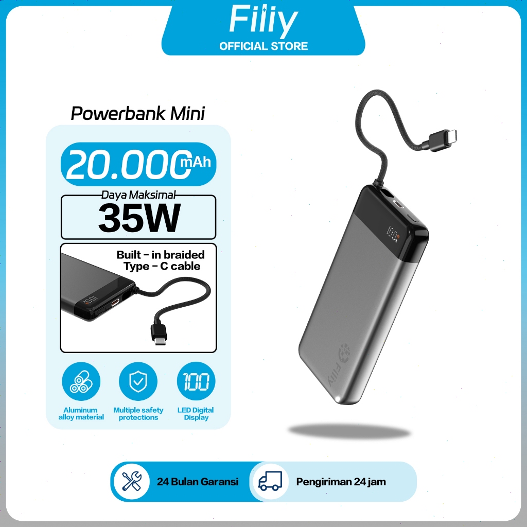 Filiy Colorful Power Bank Slim 35W 20000mAh Fast Charging Kabel Type C Built-in PD QC 3.0