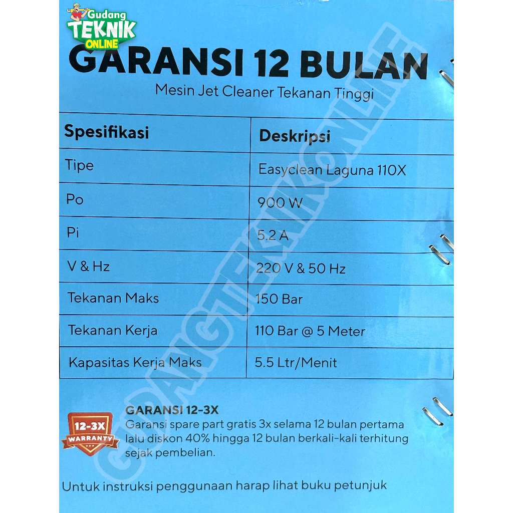 Mesin Jet Cleaner LAKONI EASYCLEAN LAGUNA 110X 150 Bar / Mesin Steam Air Semprot Cuci Motor Mobil Listrik - High Pressur