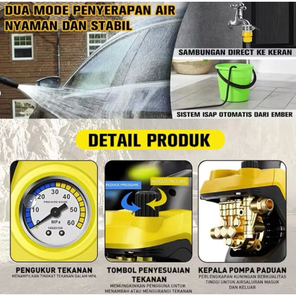 Reaim Alat Steam Cuci Motor 600W 450Bar Mobil Jet Cleaner Mesin Cuci Mobil Motor High Pressure Washer Alat Cuci Mobil Cu