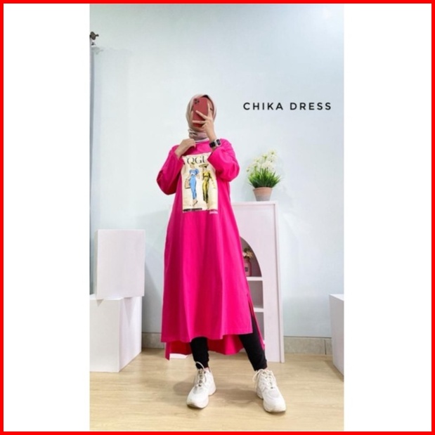 Chika Dress Midi Dress Kaos Dewasa Remaja Trend Yayuku By Yayoe Hijab