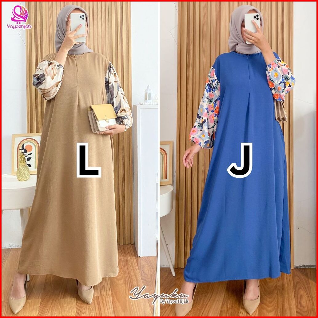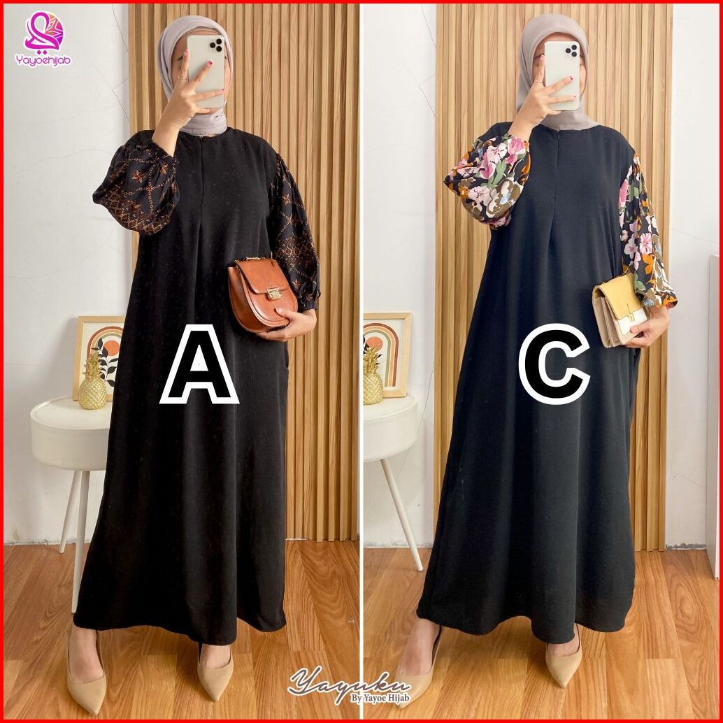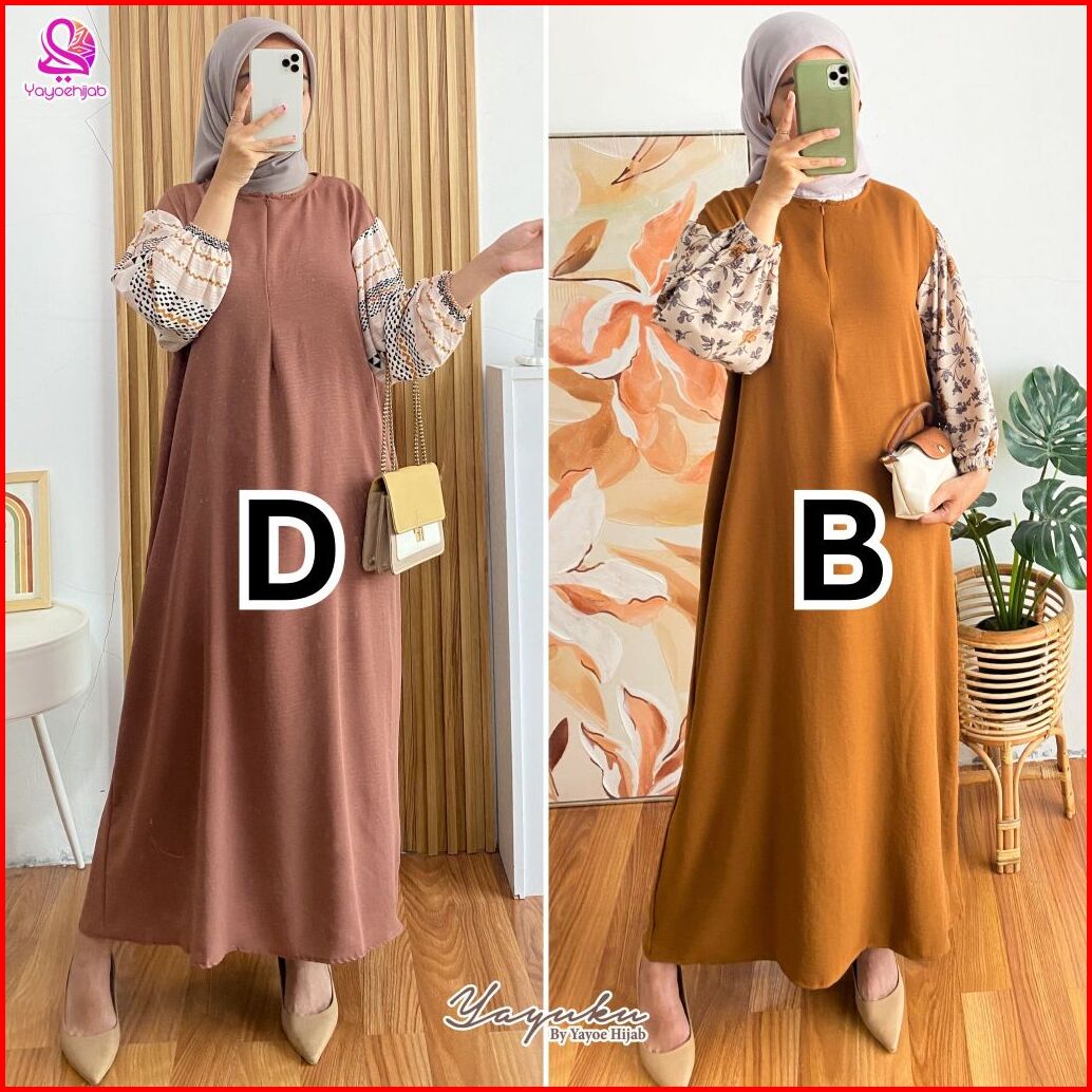 Paket 2 Pcs Kinanti Dress Kombinasi Polos Motif Gamis Wanita Fashion Muslimah Yayuku By Yayoe Hijab