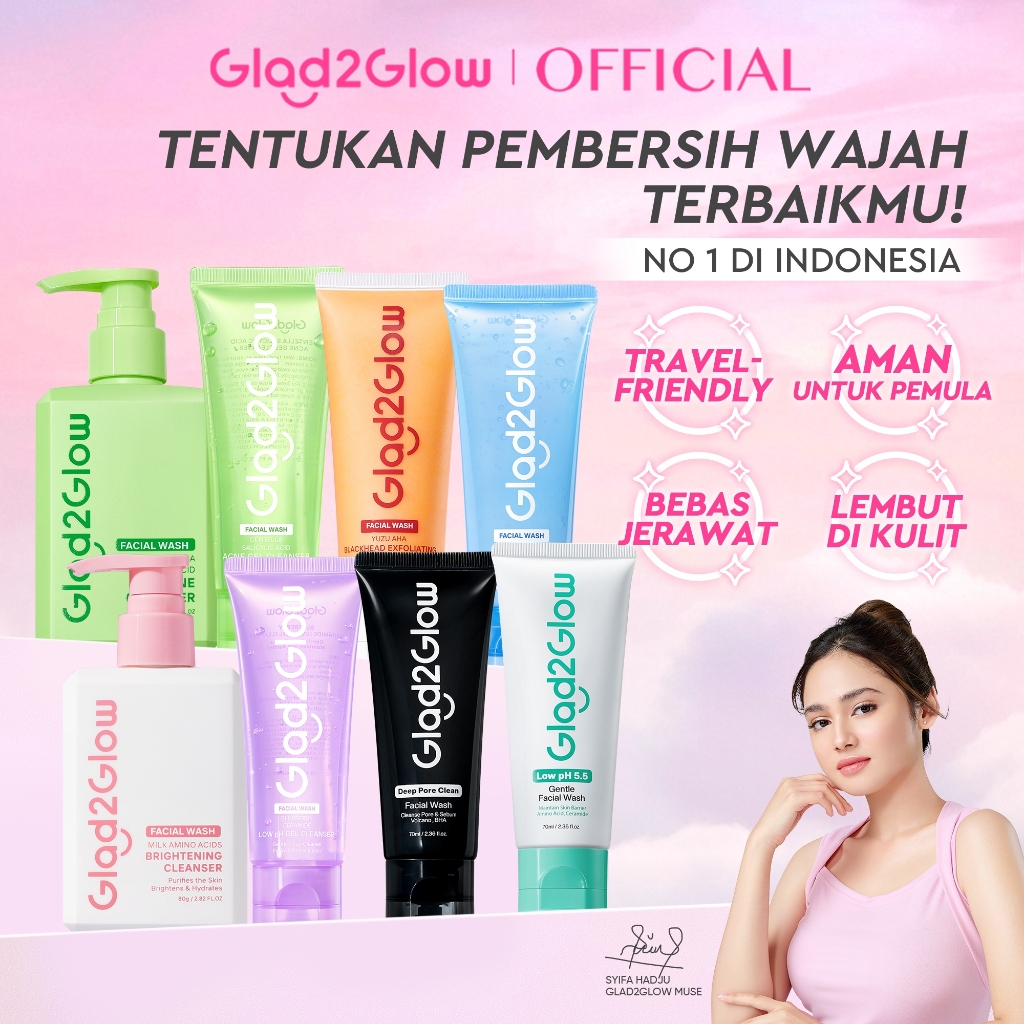 Glad2Glow Facial Cleanser Series – Pembersih Wajah Lengkap untuk Kulit Acne, Sensitive & Dull Skin